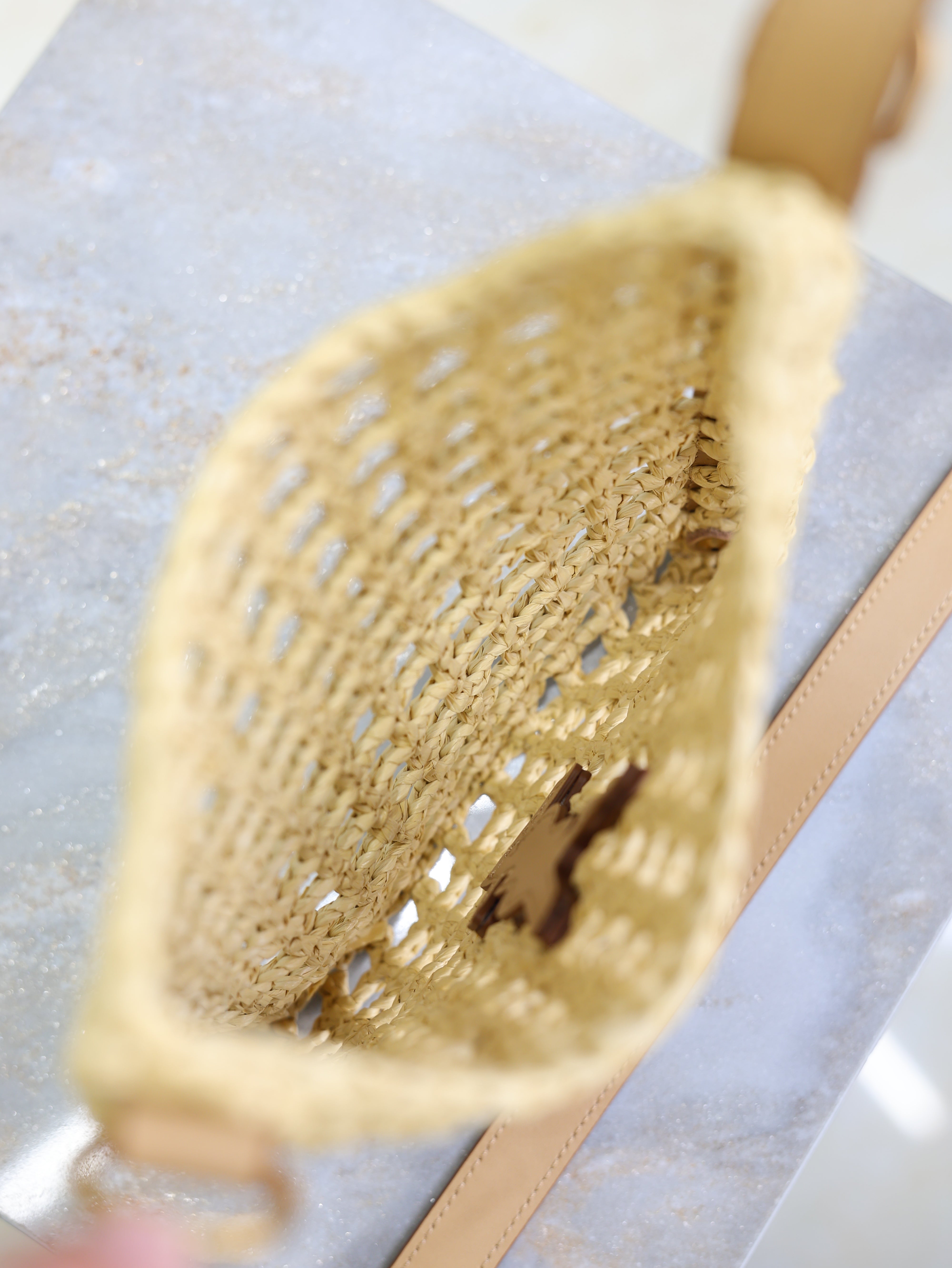 OXALIS 25 IN RAFFIA CROCHET AND LEATHER VINTAGE BROWN