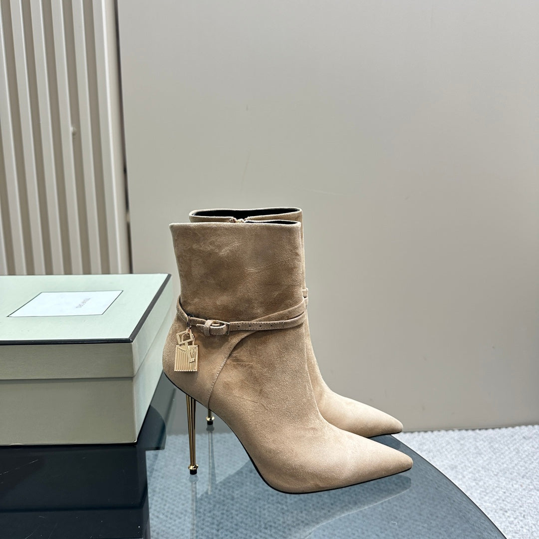 PADLOCK 10 CM ANKLE BOOTS IN TAN BROWN SUEDE