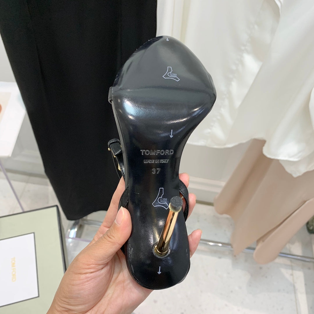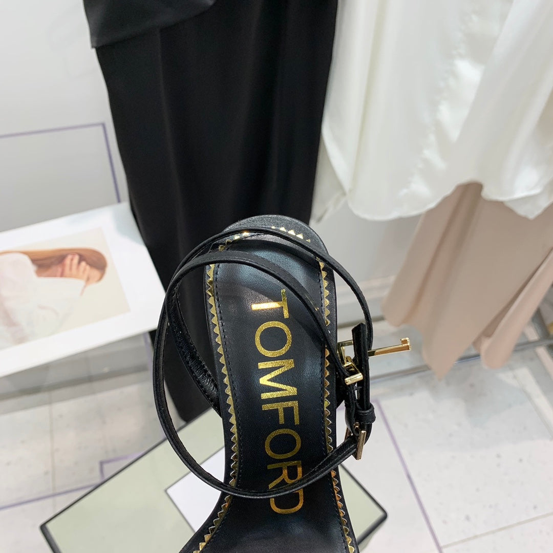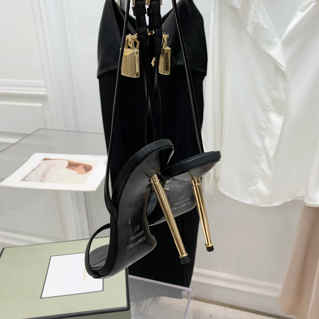 PADLOCK HIGH HEEL 10 CM SANDAL IN BLACK SHEEPSKIN