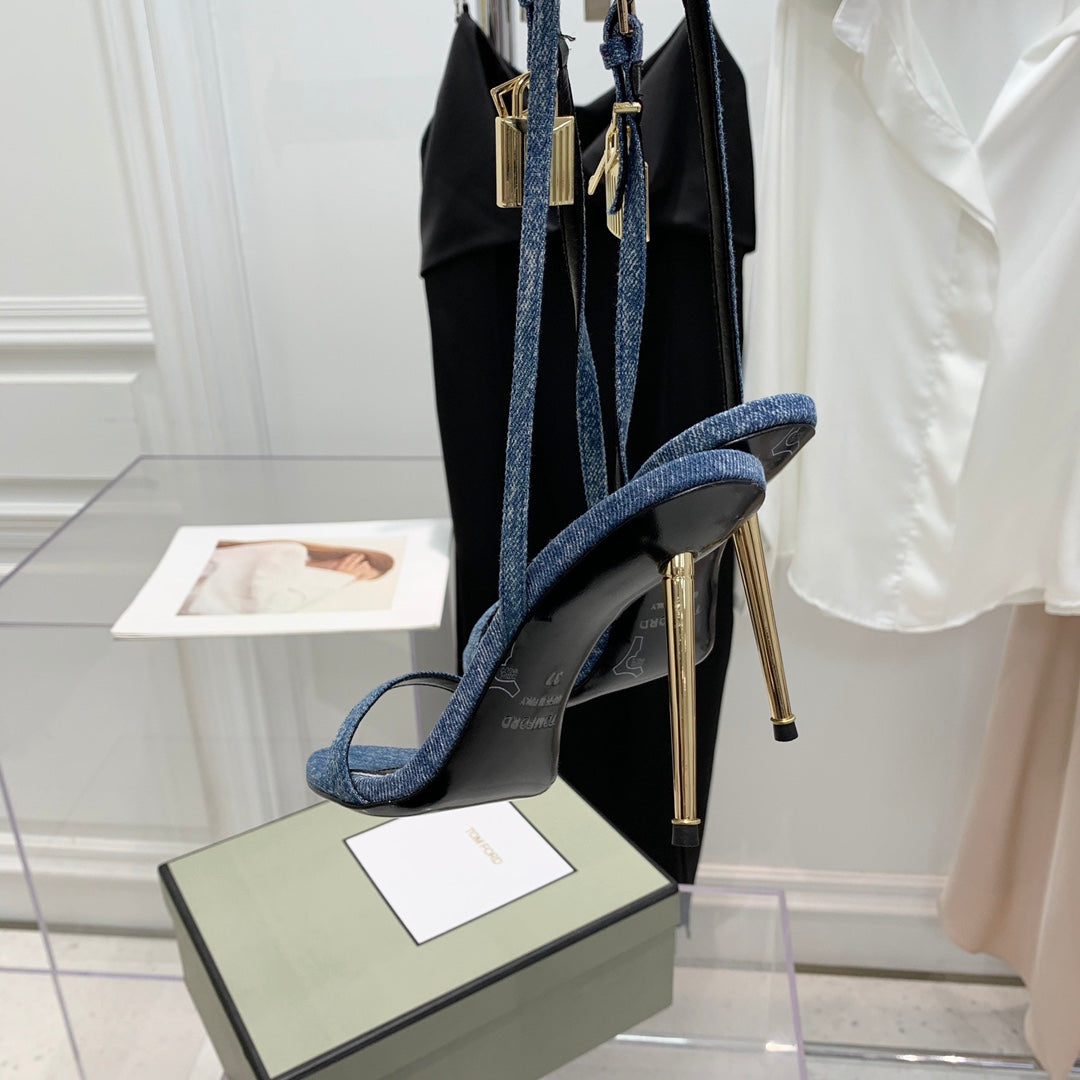 PADLOCK HIGH HEEL 10 CM SANDAL IN LIGHT BLUE DENIM