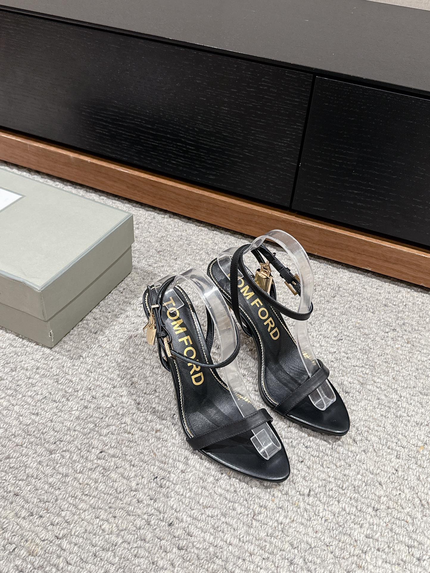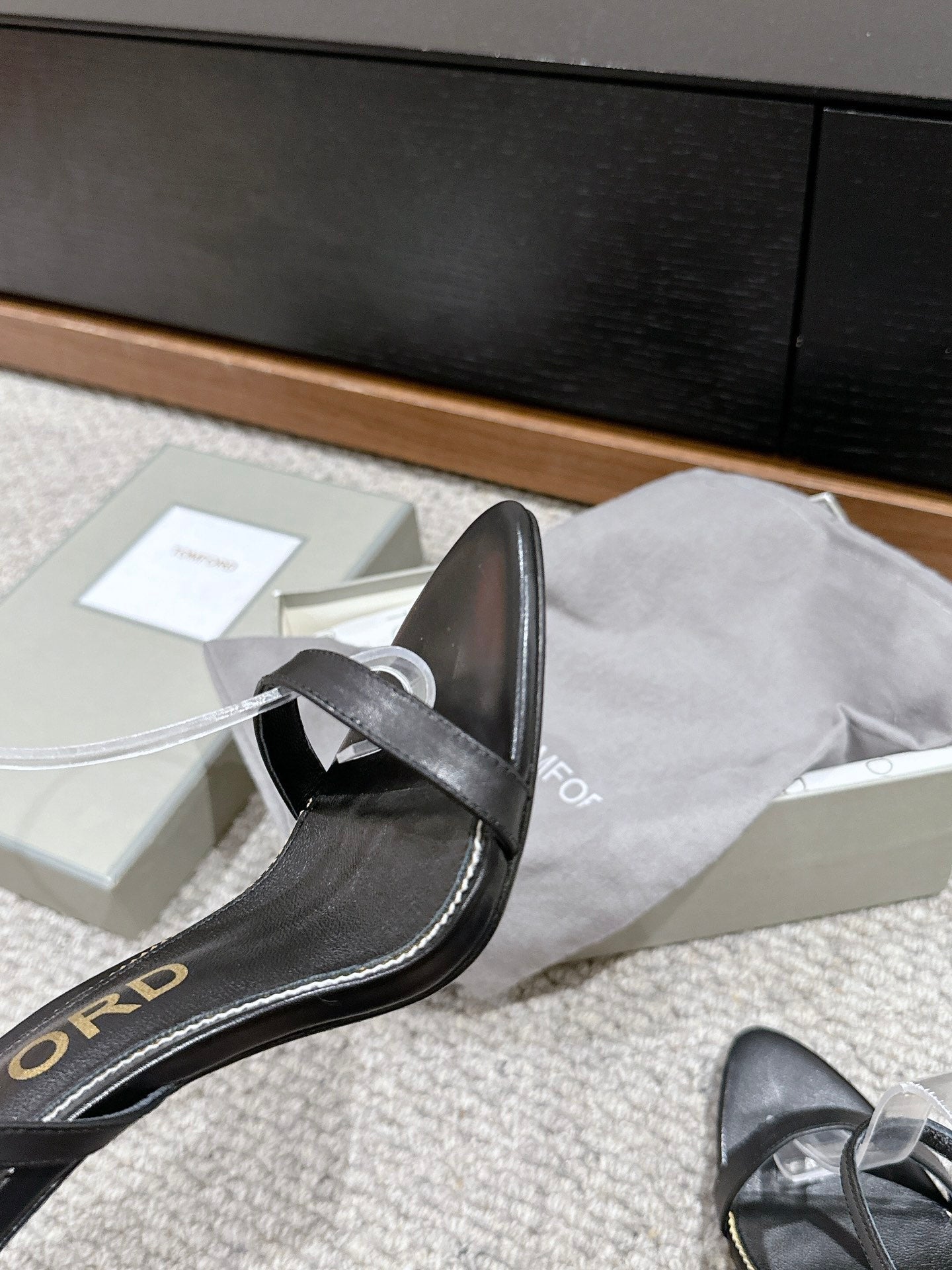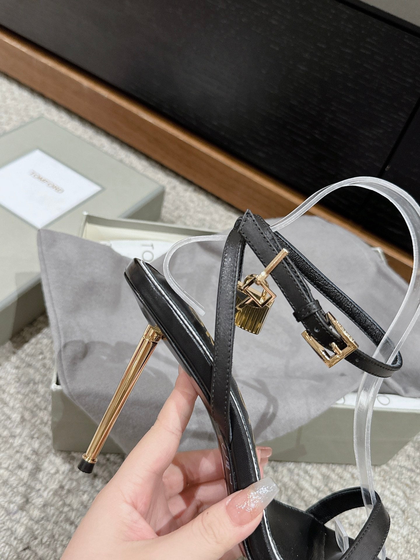 PADLOCK POINTY NAKED SANDAL 85 MM IN BLACK CALFSKIN
