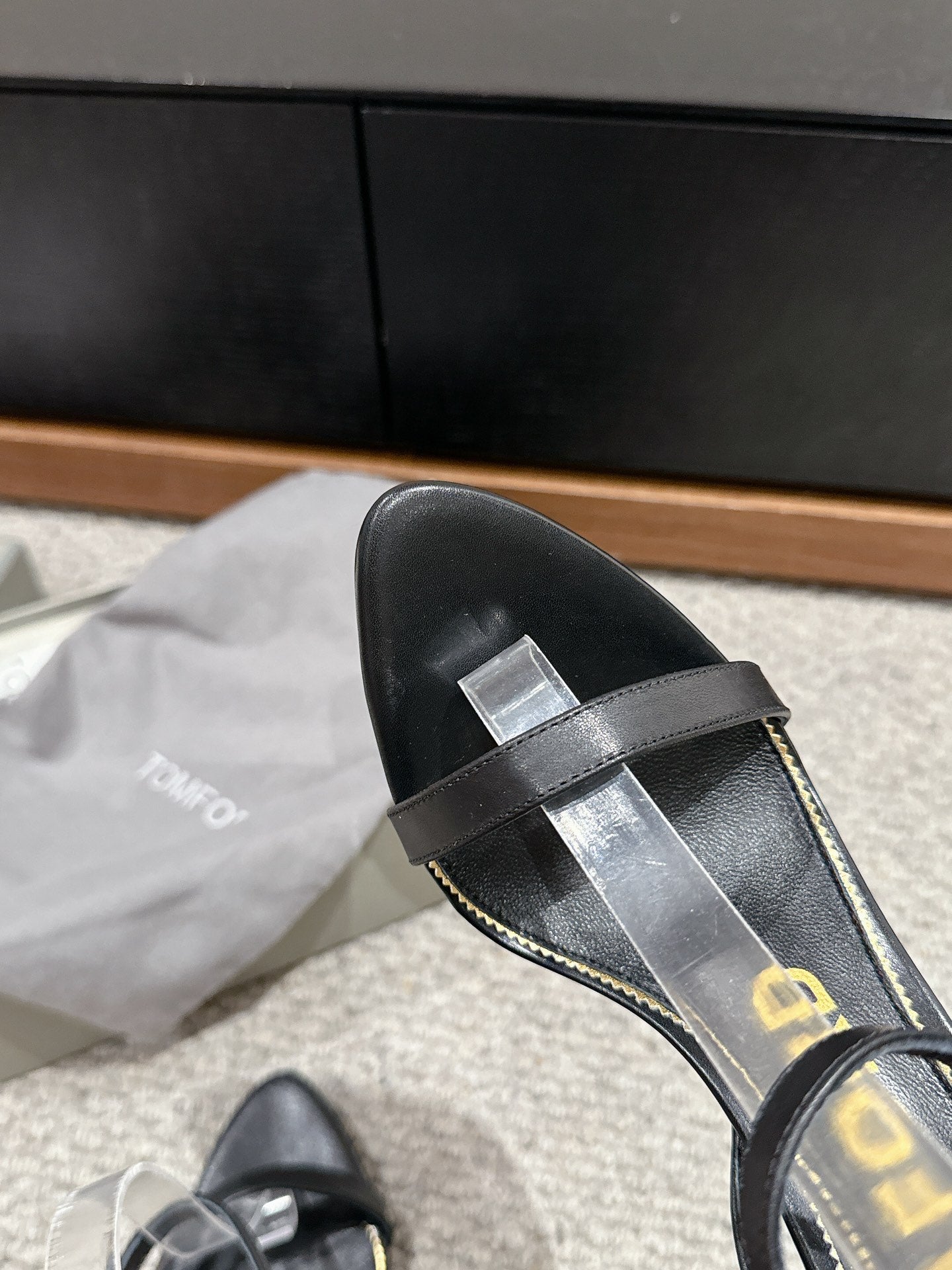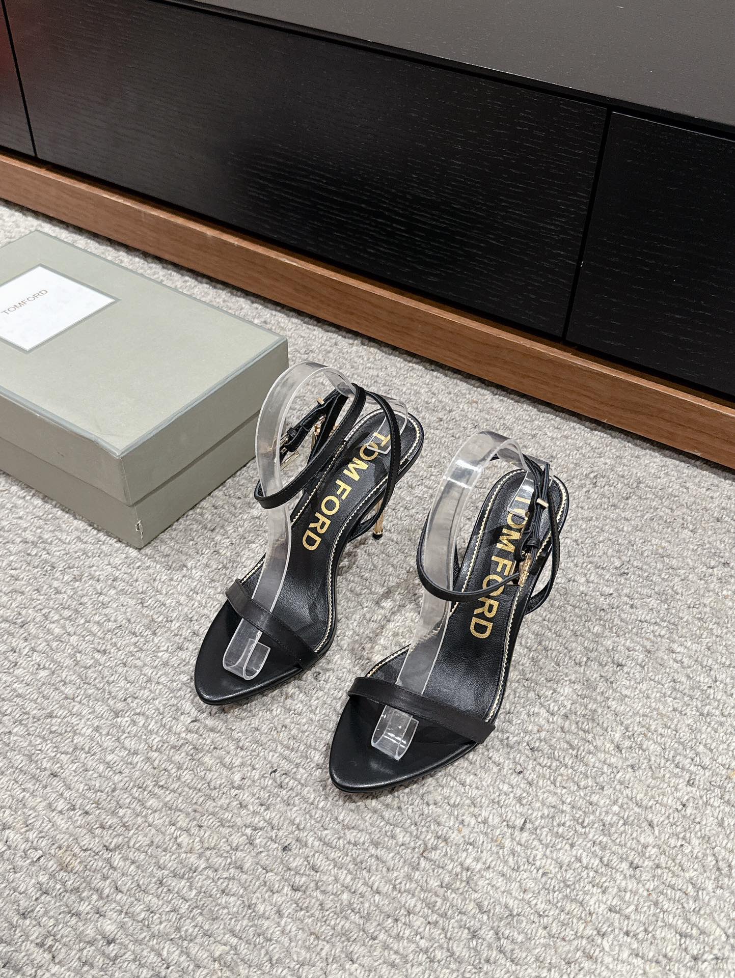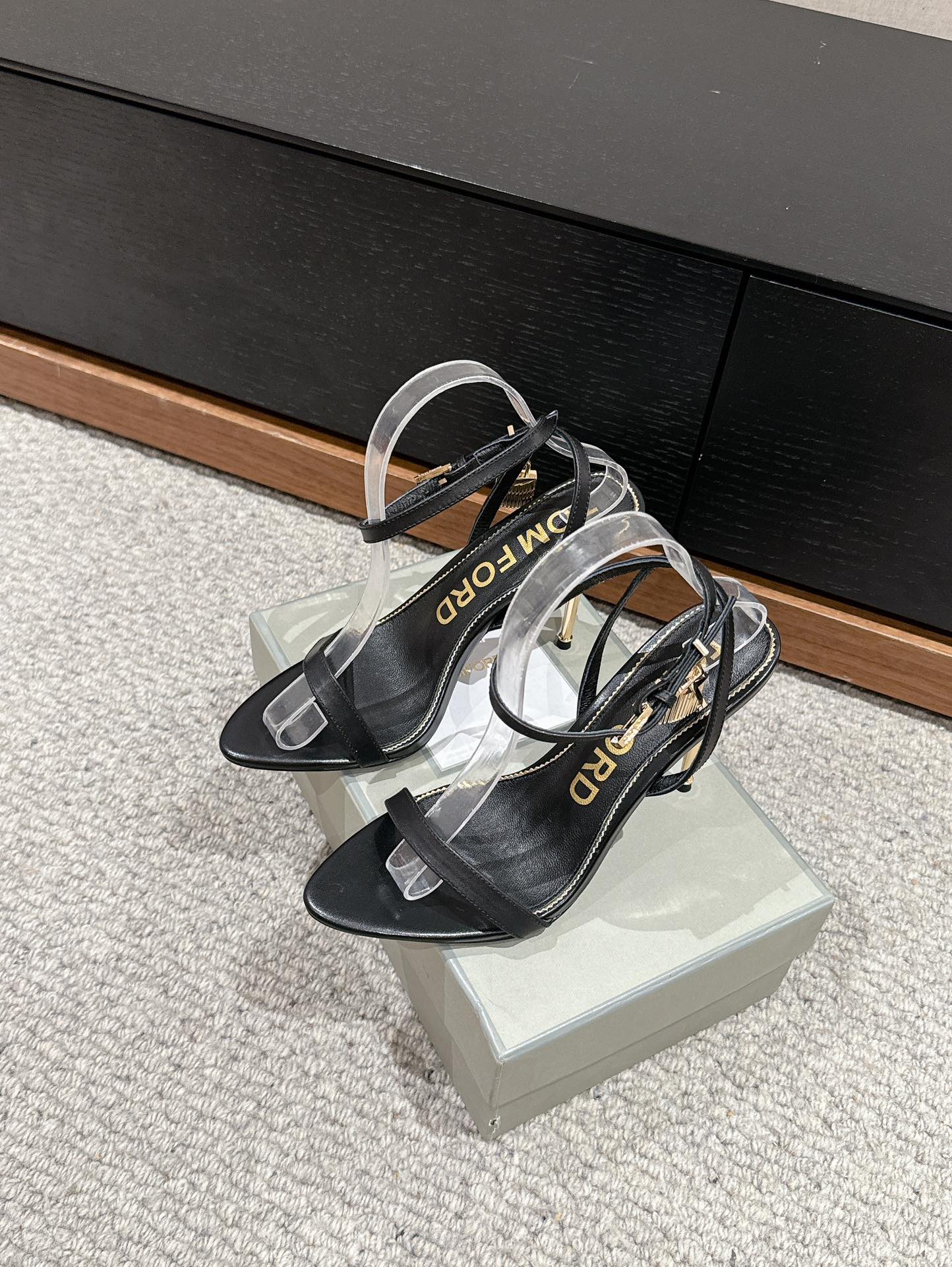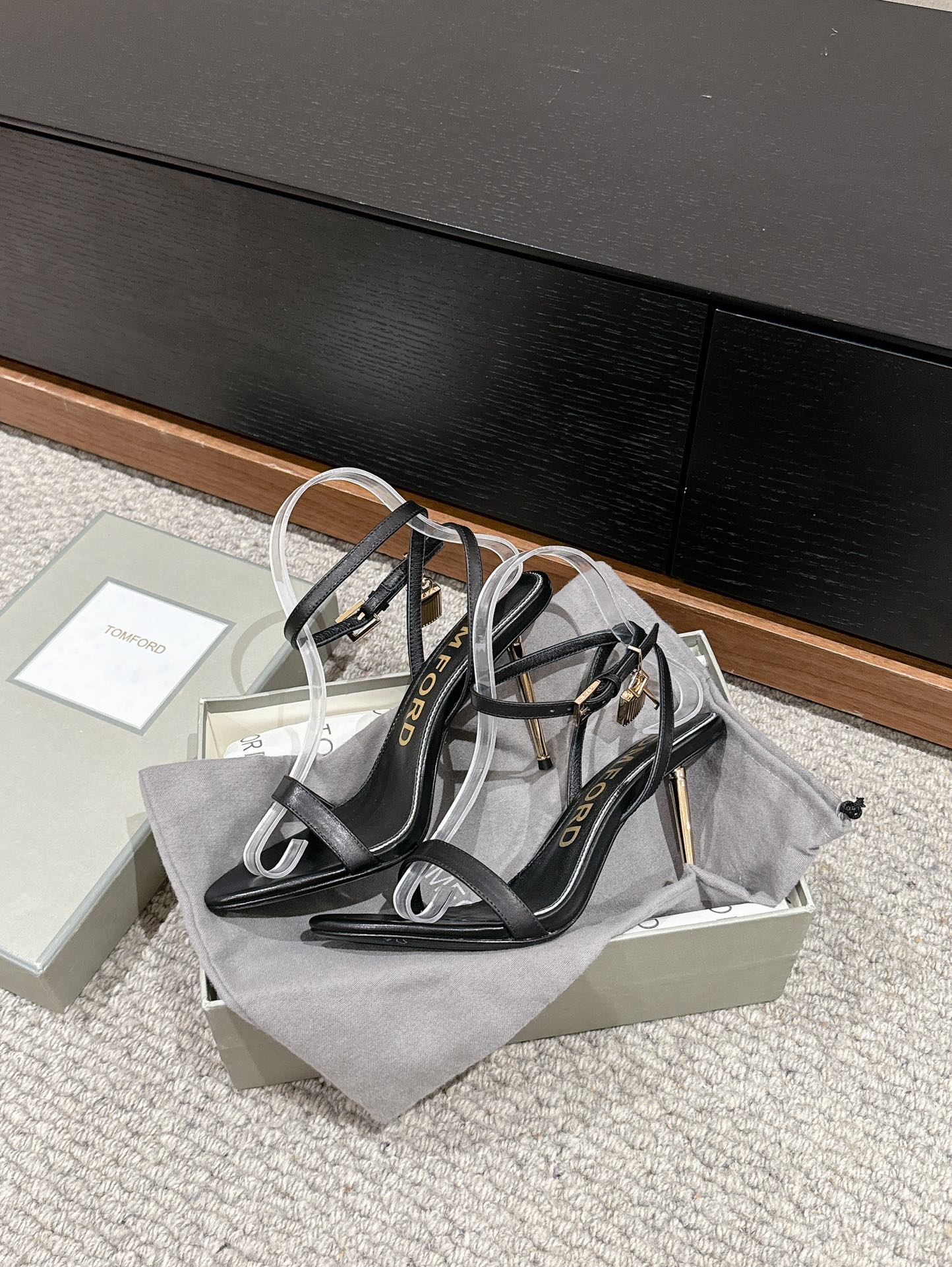 PADLOCK POINTY NAKED SANDAL 85 MM IN BLACK CALFSKIN