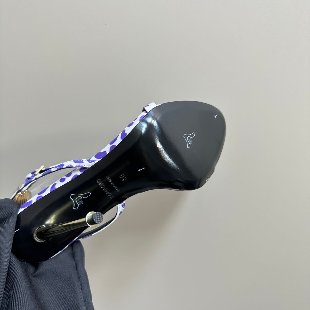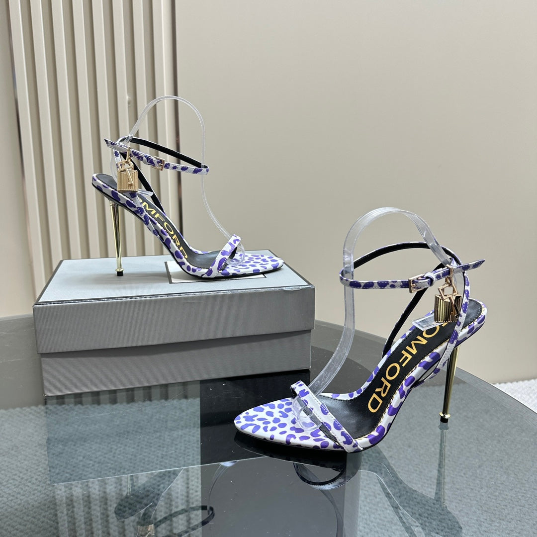 PADLOCK POINTY SANDAL 10 CM IN WHITE MIX IRIS PURPLE CALFSKIN