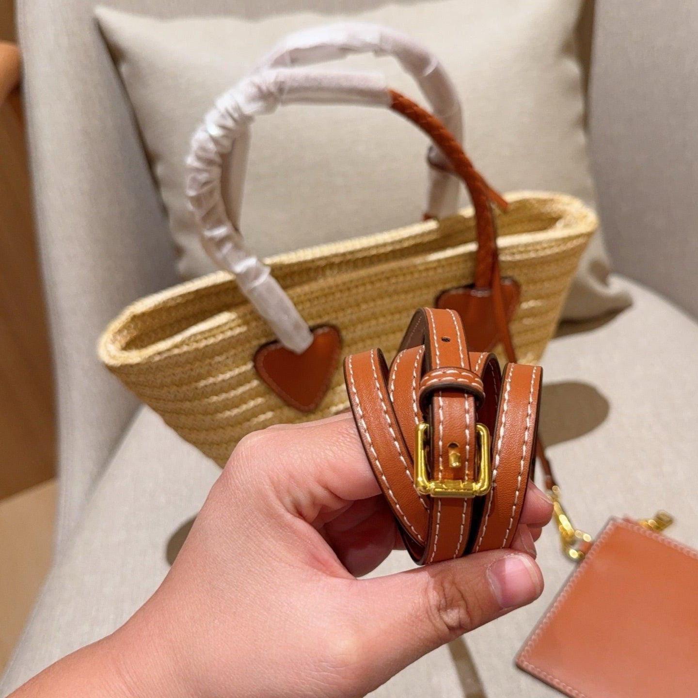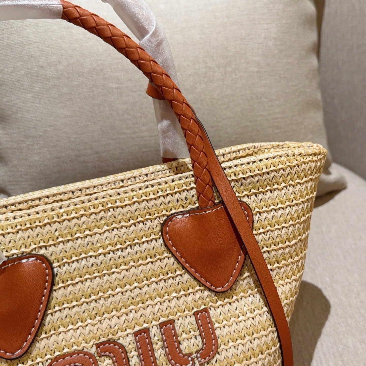 PALMETTO TOTE BAG 18 IN BEIGE WOVEN RAFFIA BROWN CALFSKIN TRIM