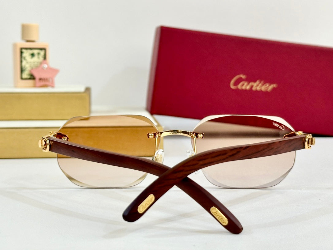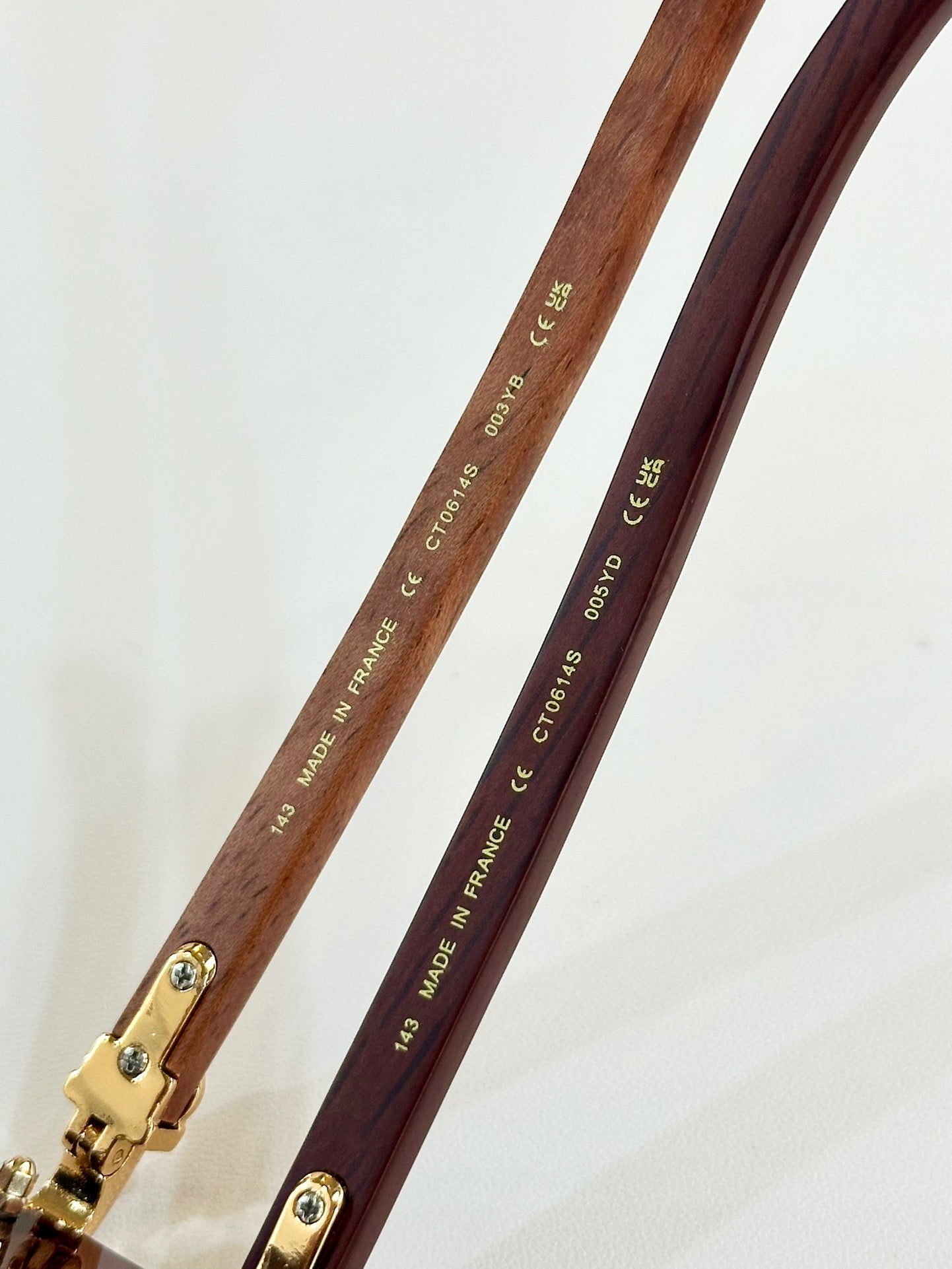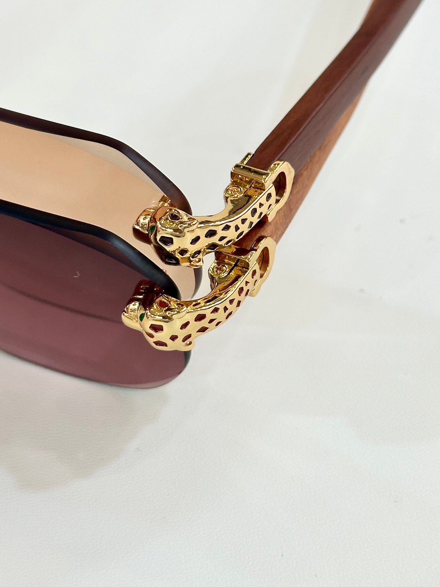 PANTHÈRE RIMLESS RECTANGULAR FRAME SUNGLASSES CT0614S IN METAL AND WOODEN
