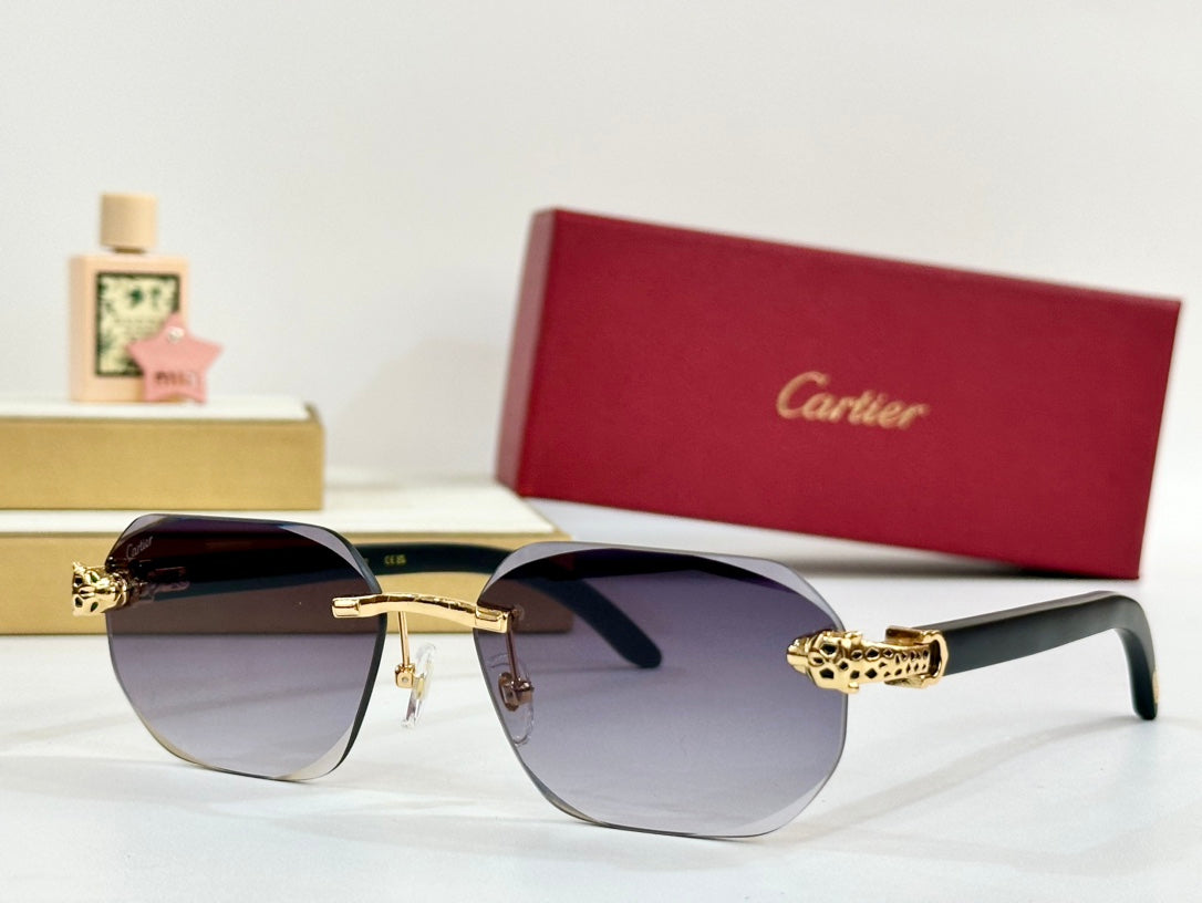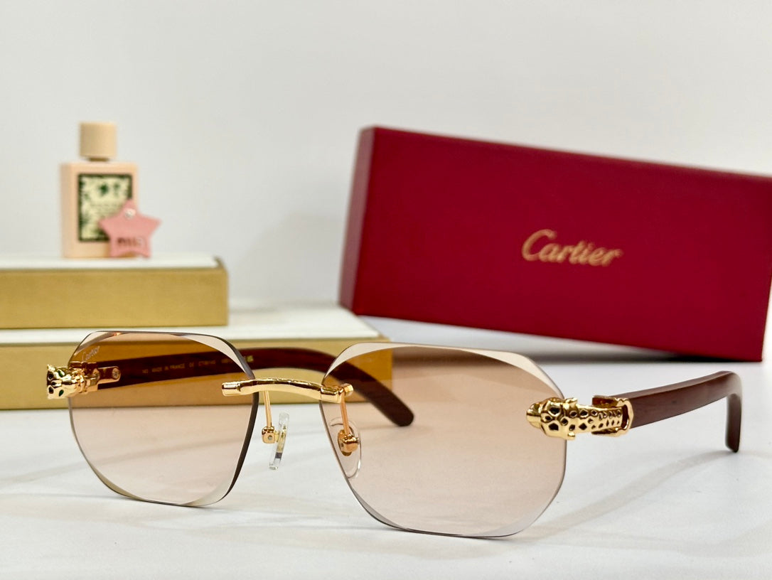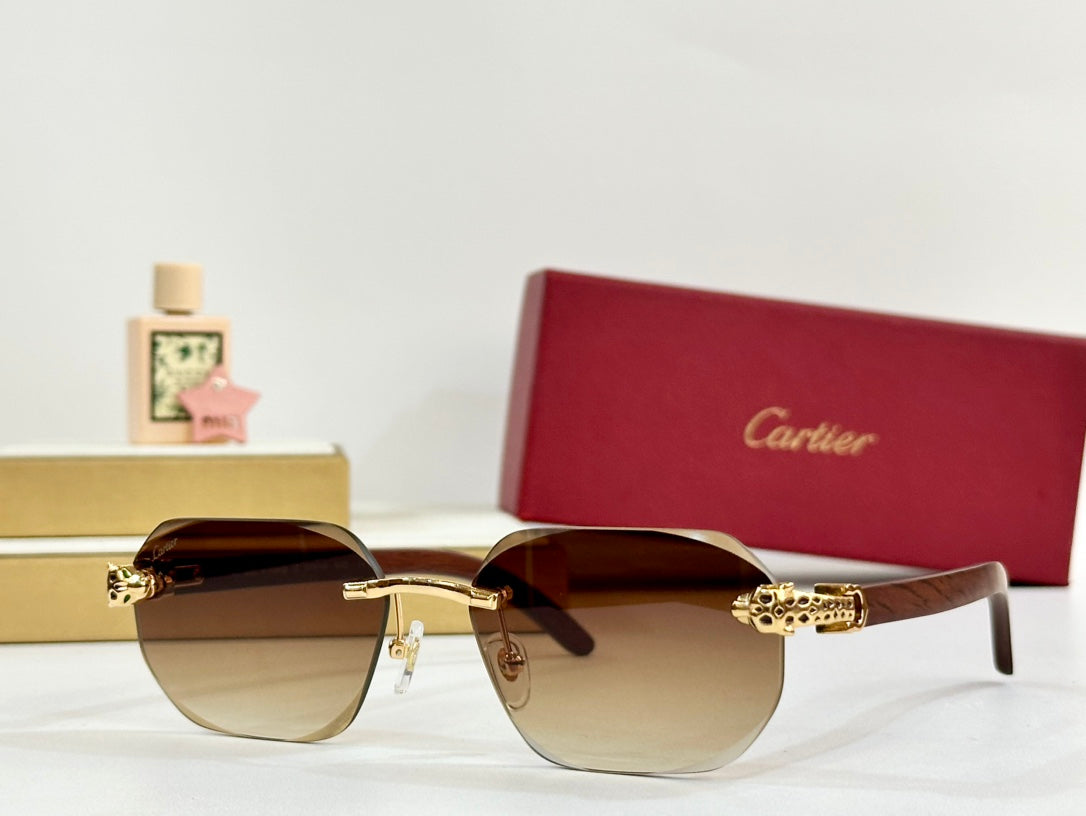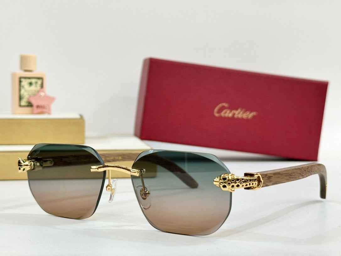 PANTHÈRE RIMLESS RECTANGULAR FRAME SUNGLASSES CT0614S IN METAL AND WOODEN