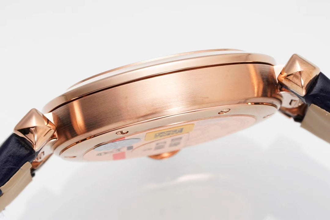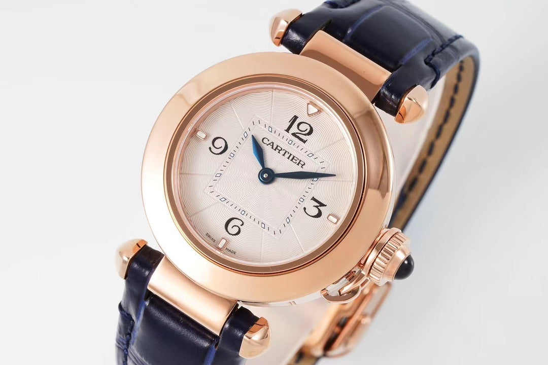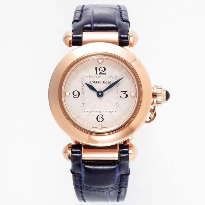 PASHA DE CARTIER WATCH ROSE GOLD CASE AND BLACK LEATHER STRAP