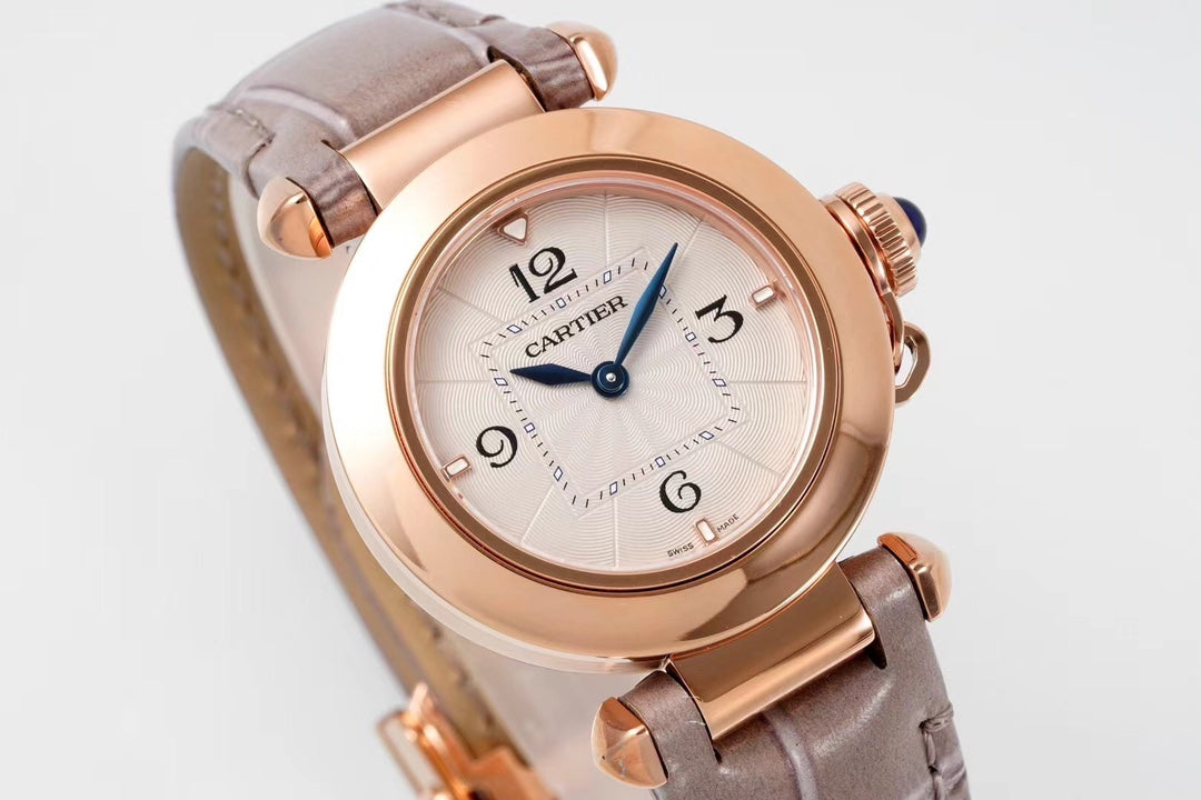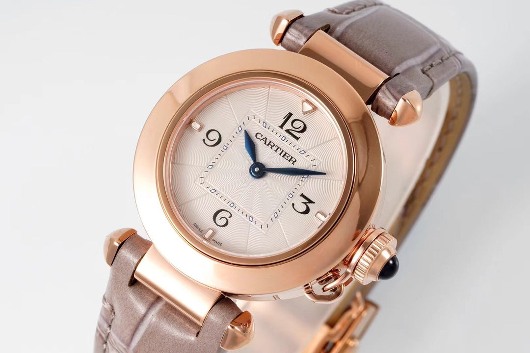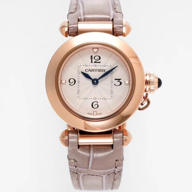 PASHA DE CARTIER WATCH ROSE GOLD CASE AND ROSE BROWN LEATHER STRAP