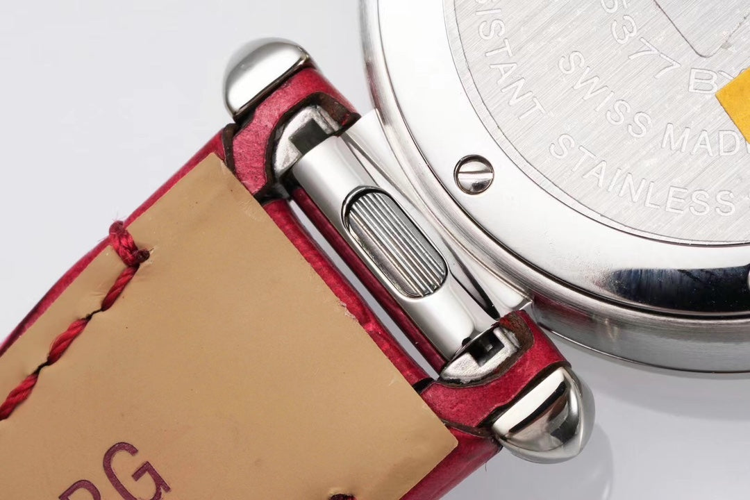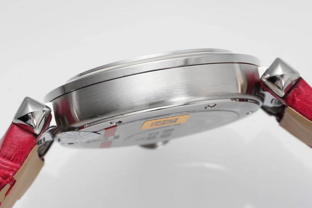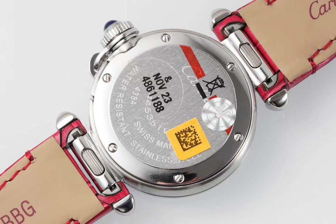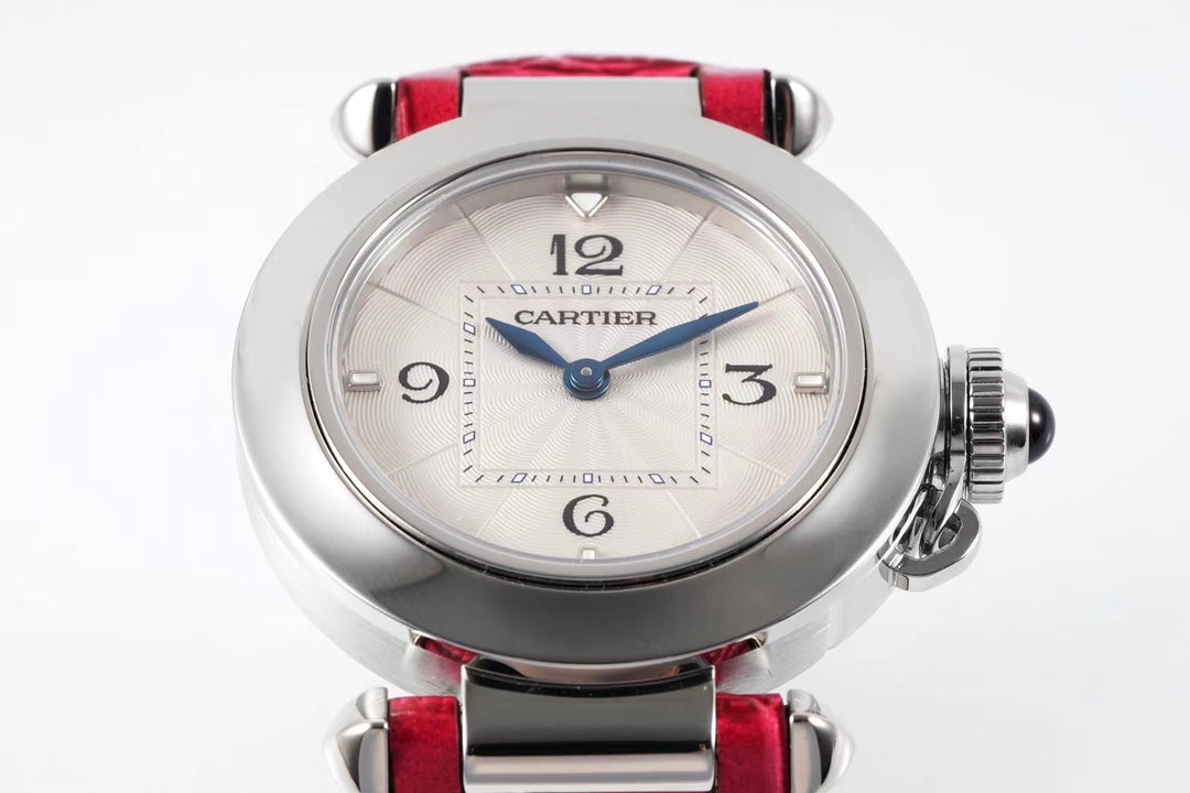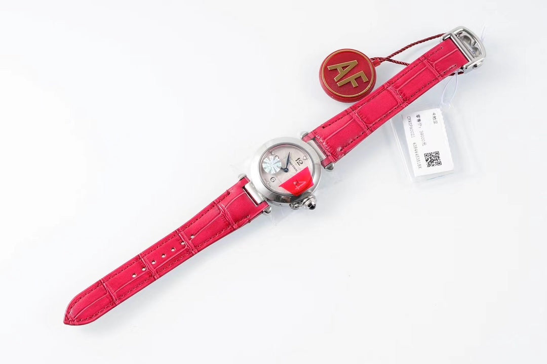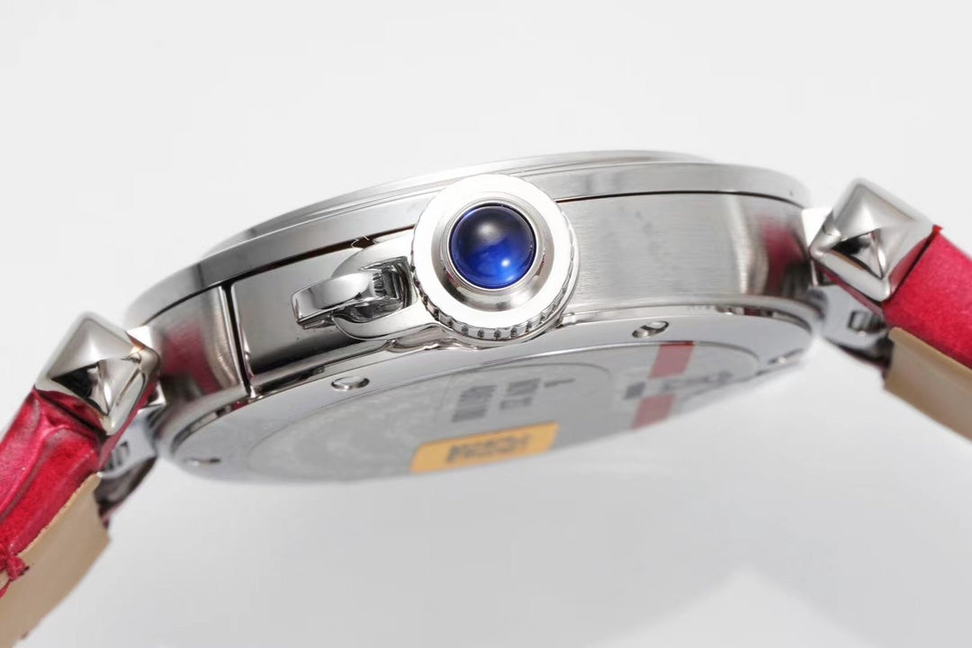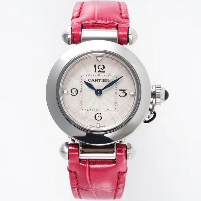 PASHA DE CARTIER WATCH SILVER CASE WITH CHERRY RED LEATHER STRAP