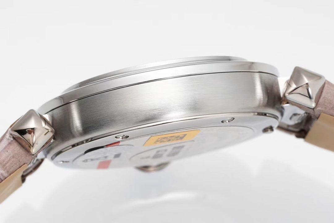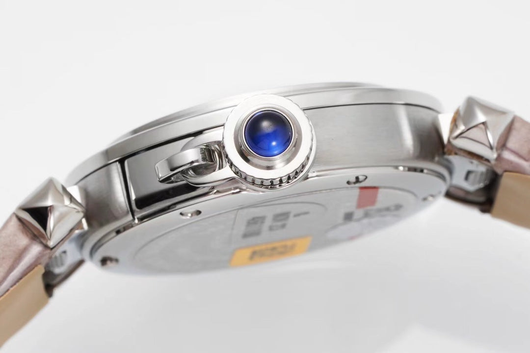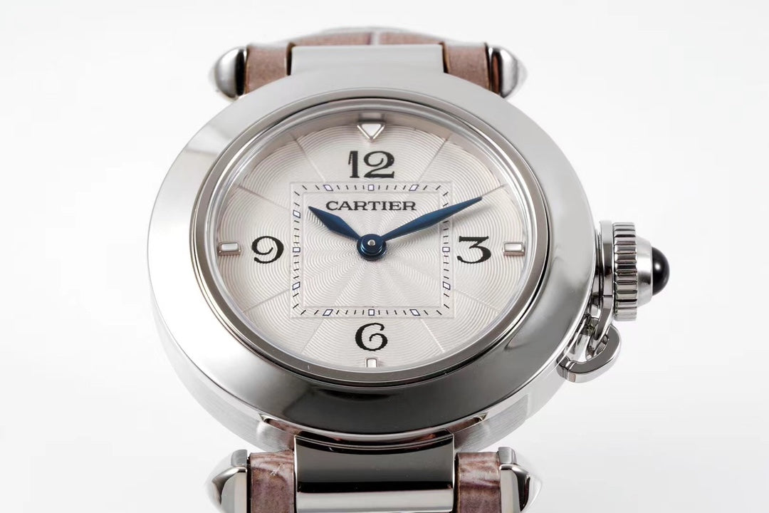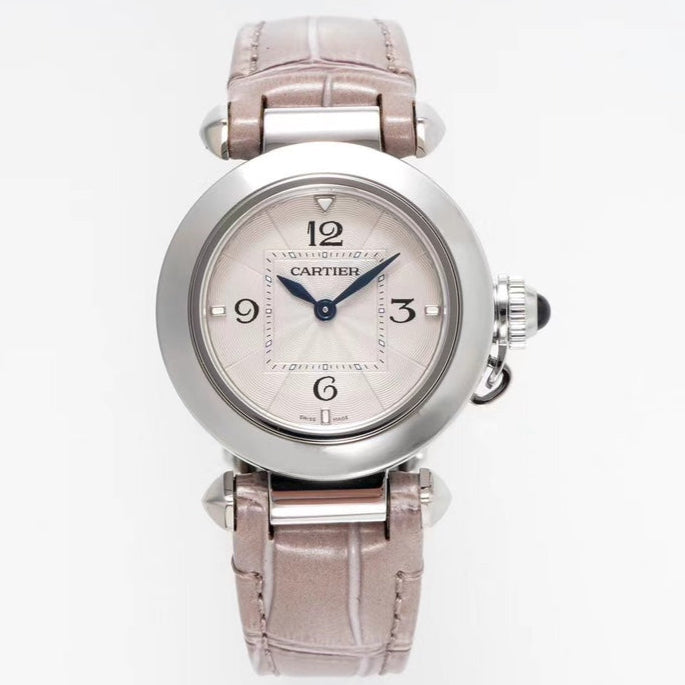 PASHA DE CARTIER WATCH SILVER CASE WITH ROSE BROWN LEATHER STRAP