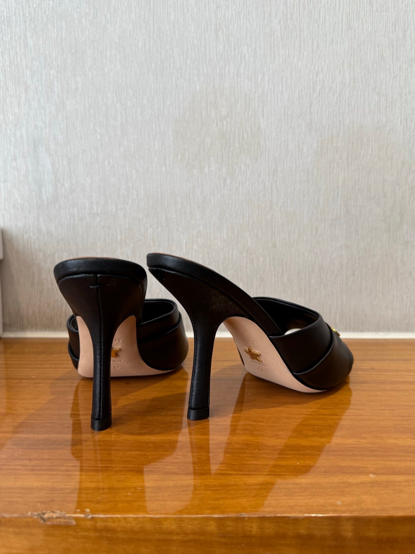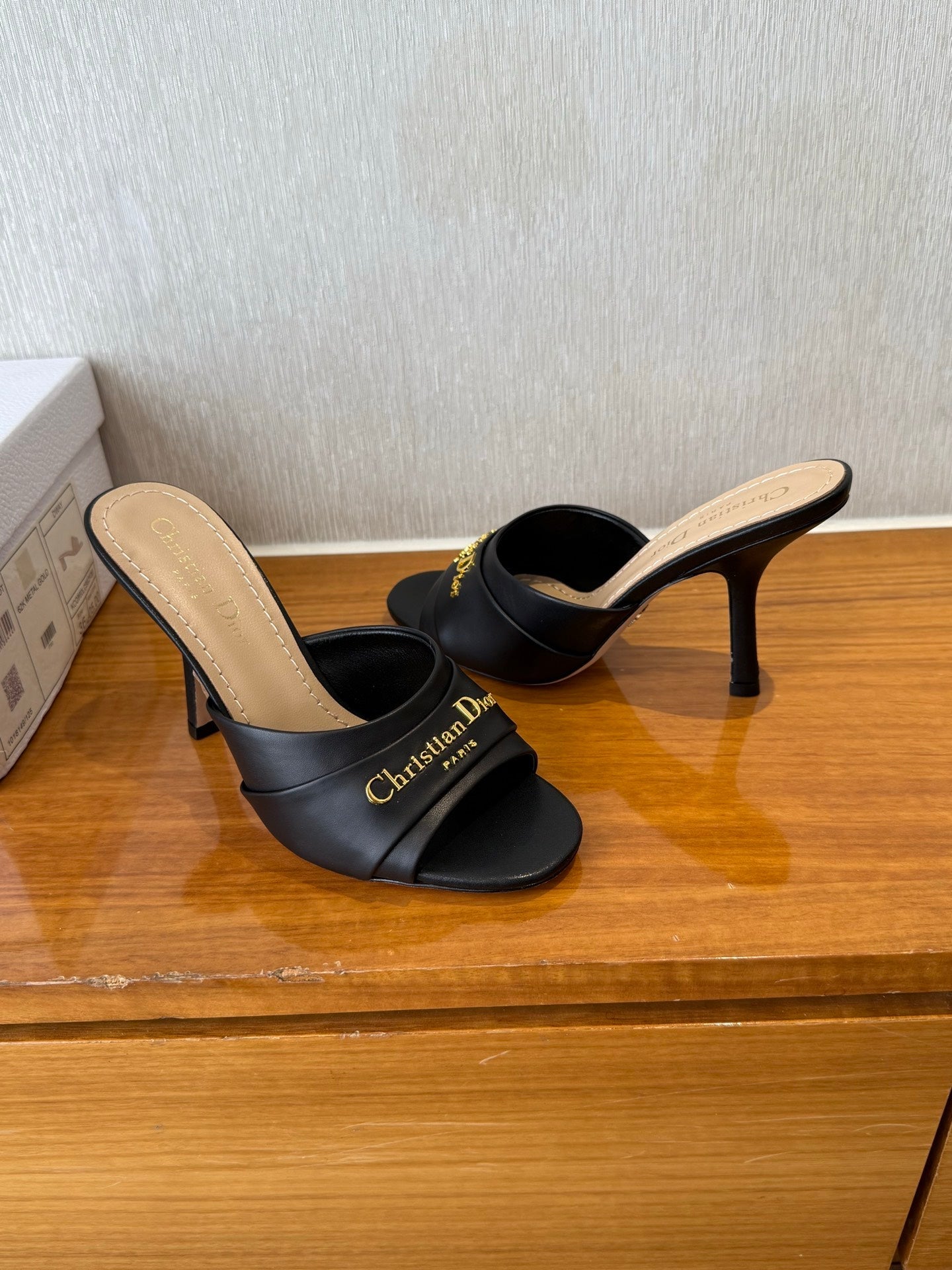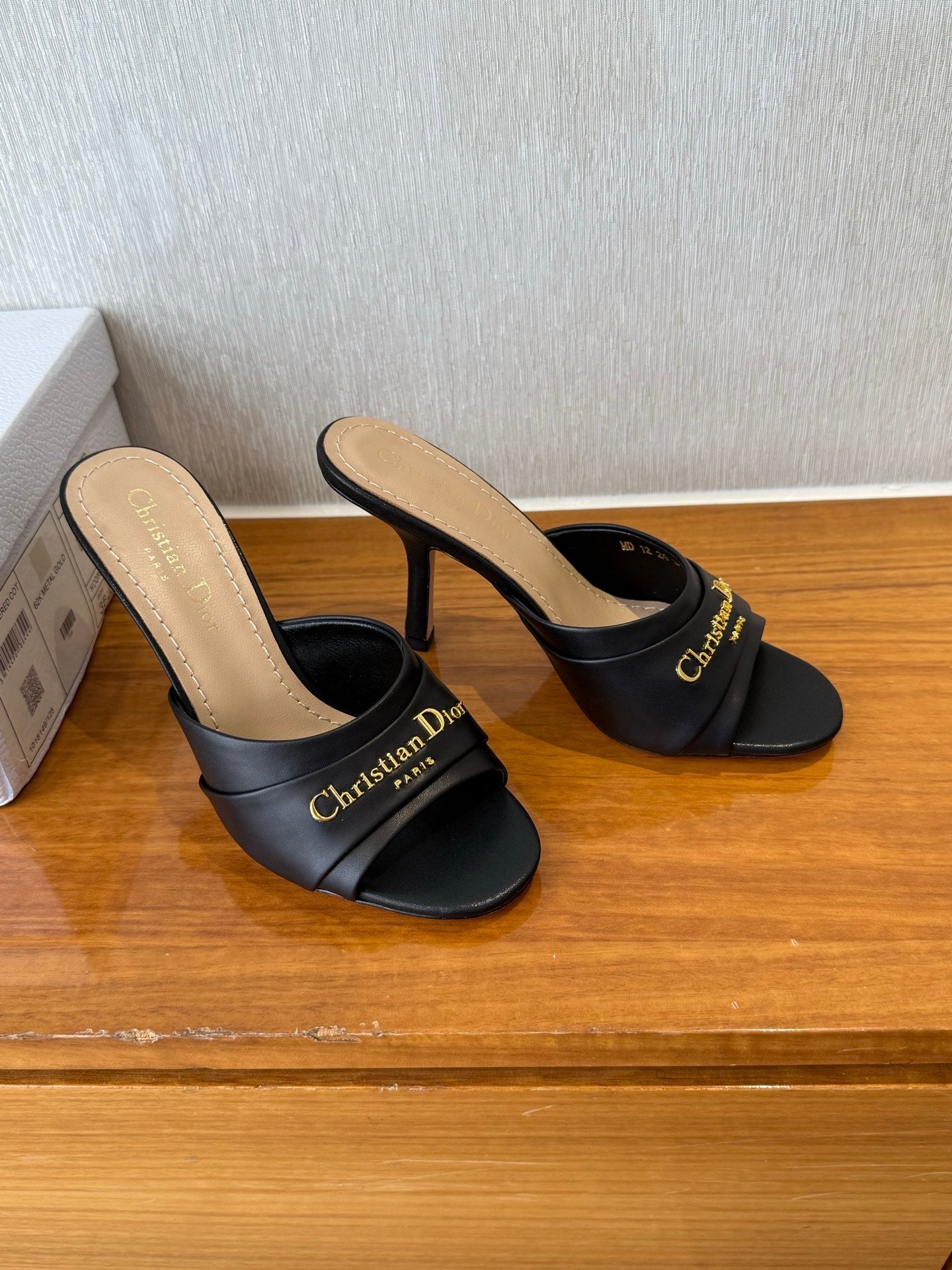 PEEP TOE SANDAL 25S HEELS 10CM IN BLACK CALFSKIN