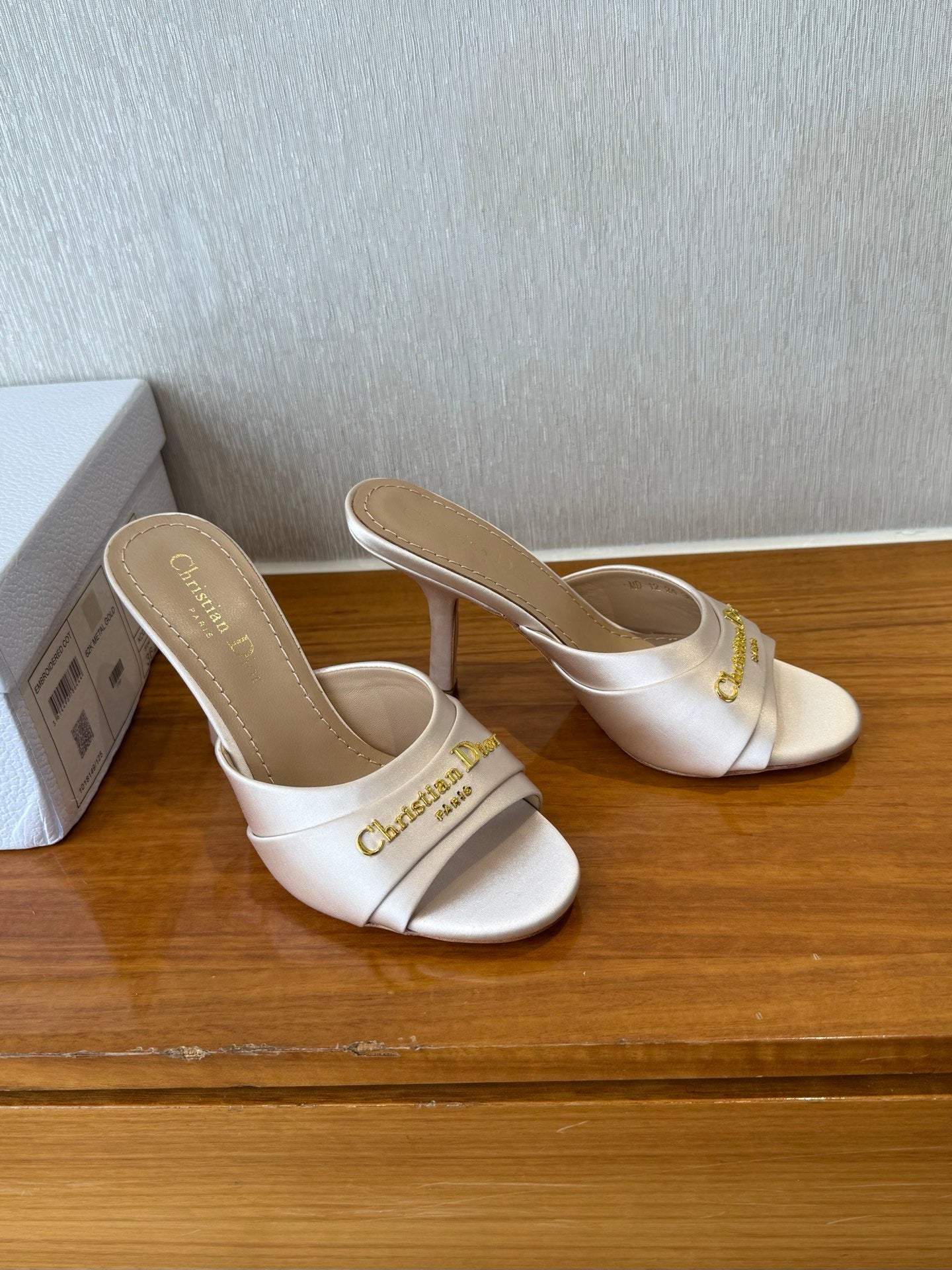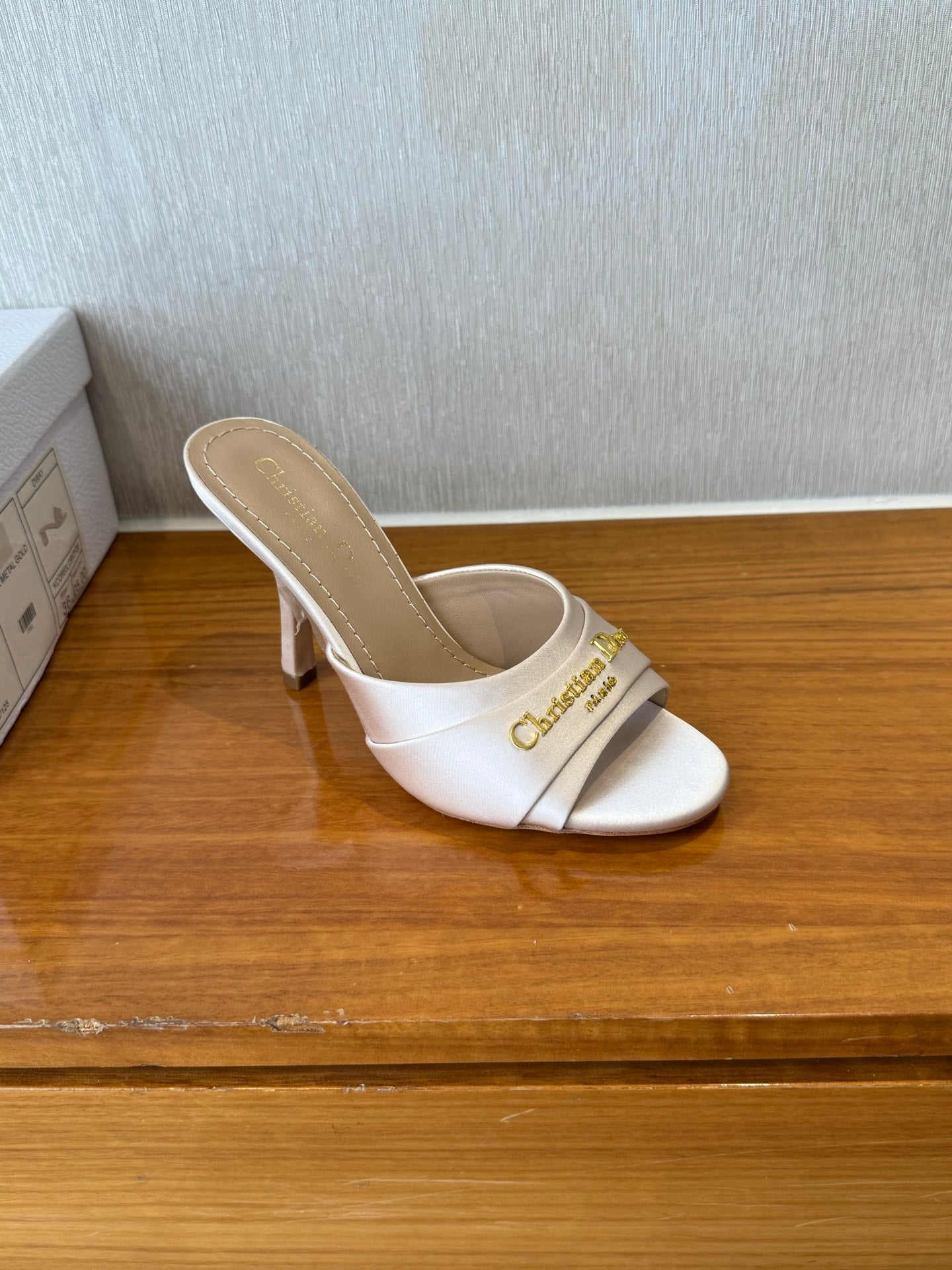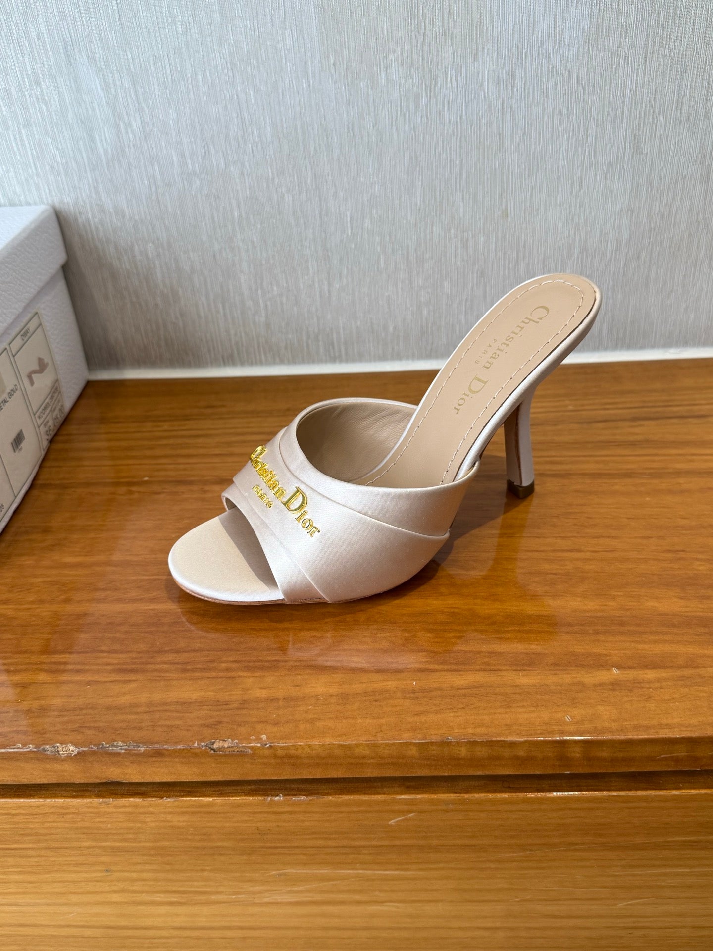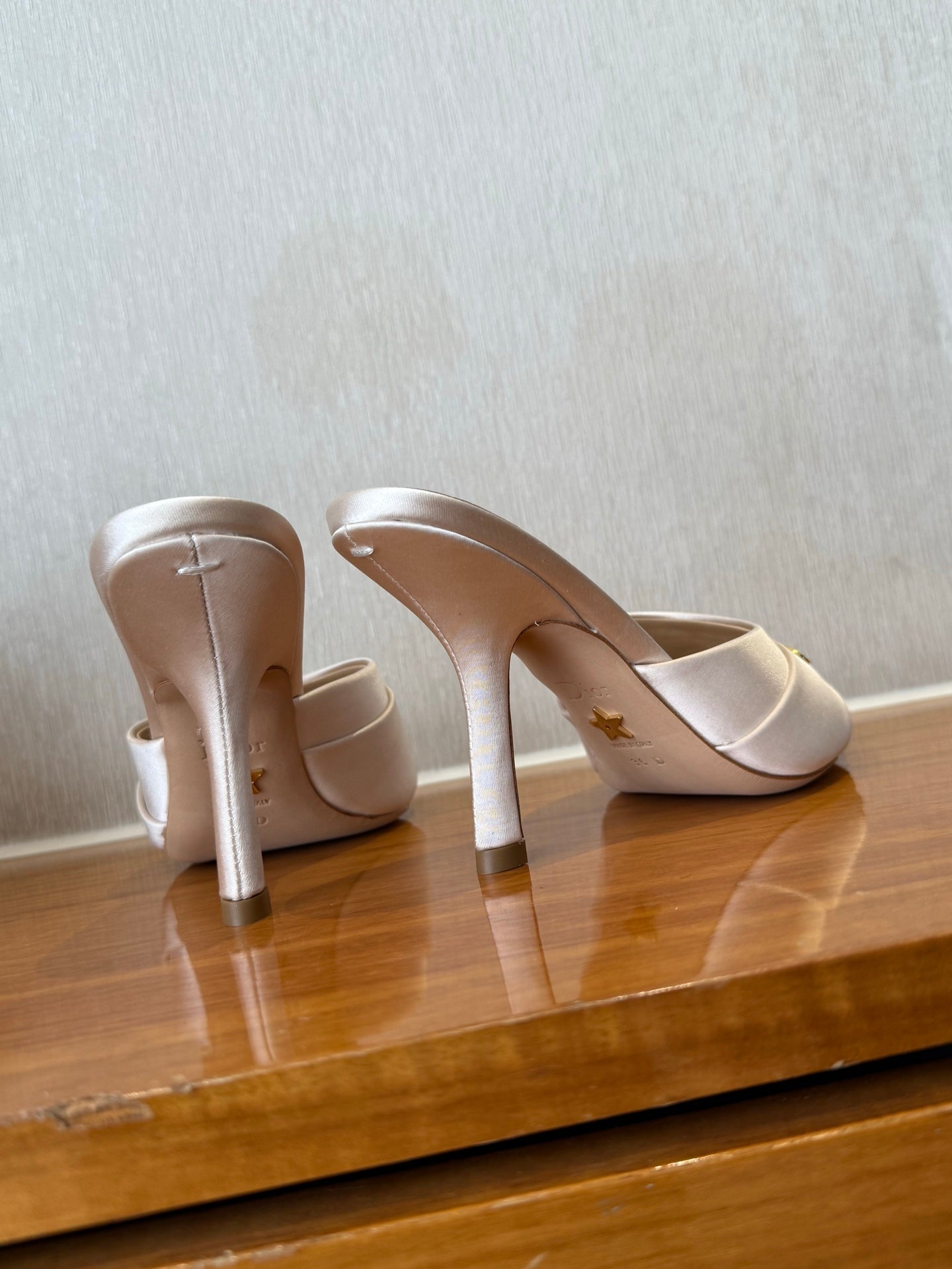 PEEP TOE SANDAL 25S HEELS 10CM IN PALE PINK BEIGE SATIN