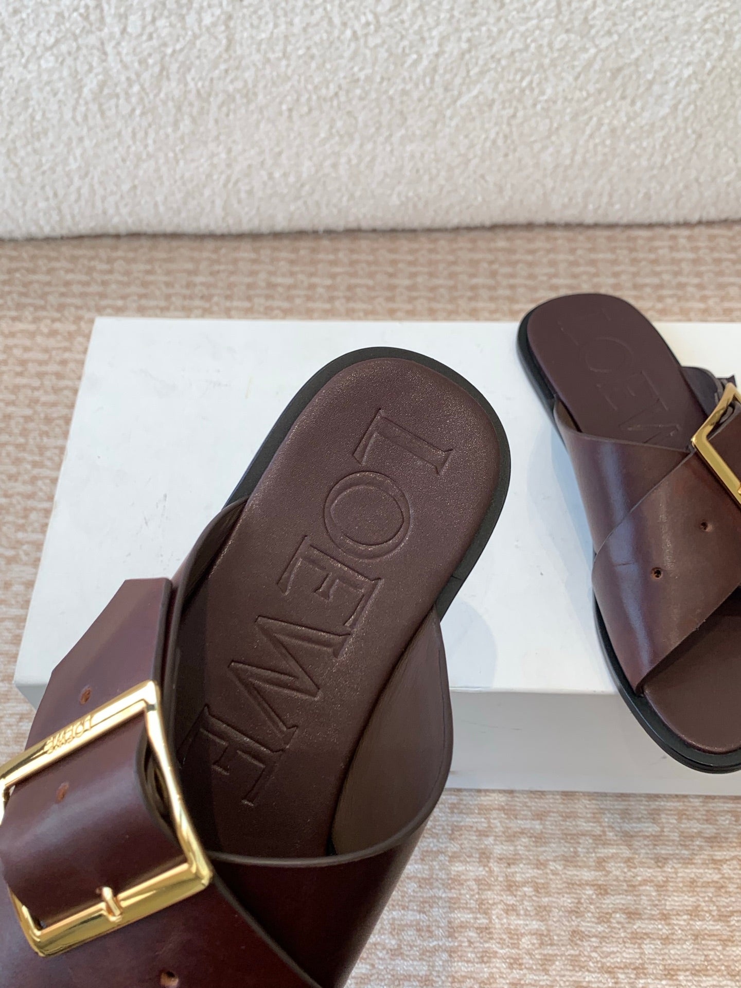 PETAL BELT FLAT SANDAL IN RUSSET BROWN CALFSKIN
