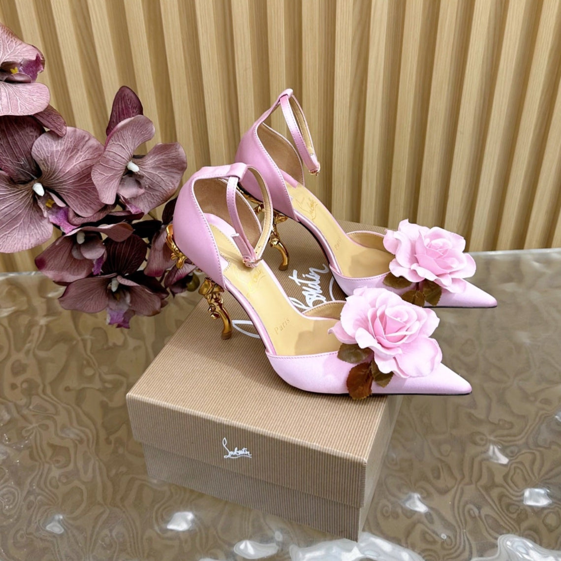 PINK BELLAROSE STRAP PUMPS 110MM IN PINK CREPE SATIN