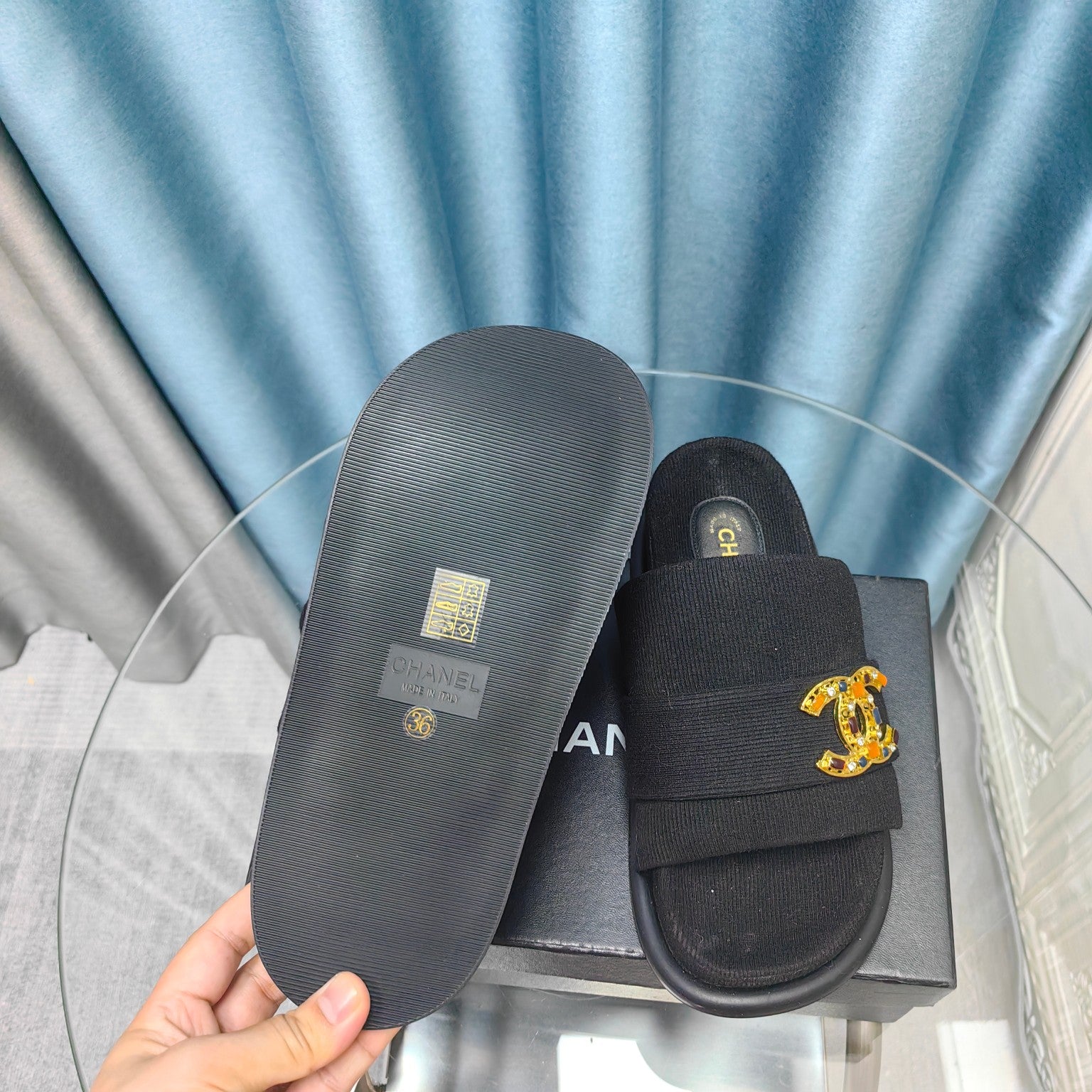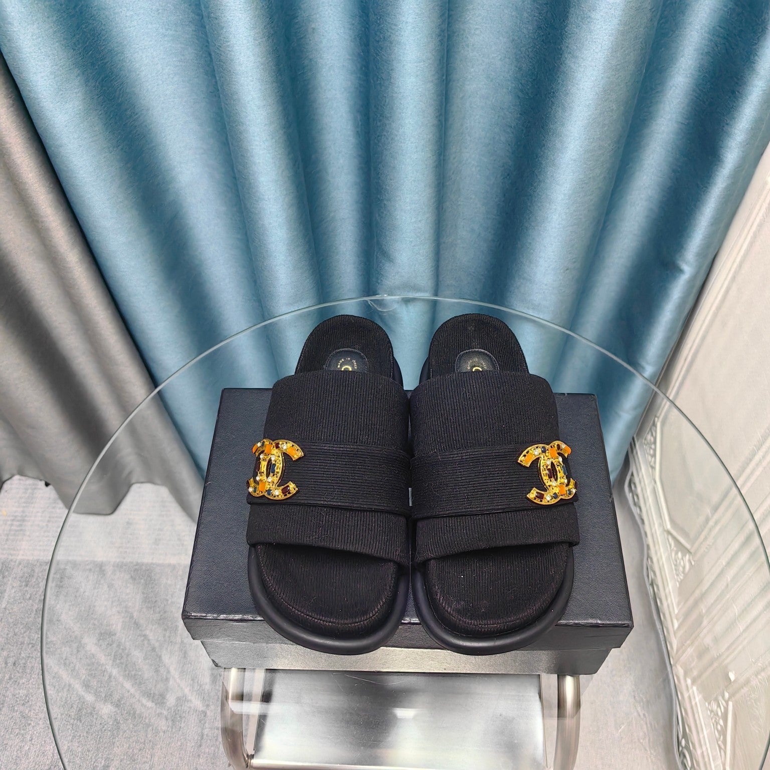 PLATFORM HEELS SANDALS IN BLACK WOOLEN FABRIC