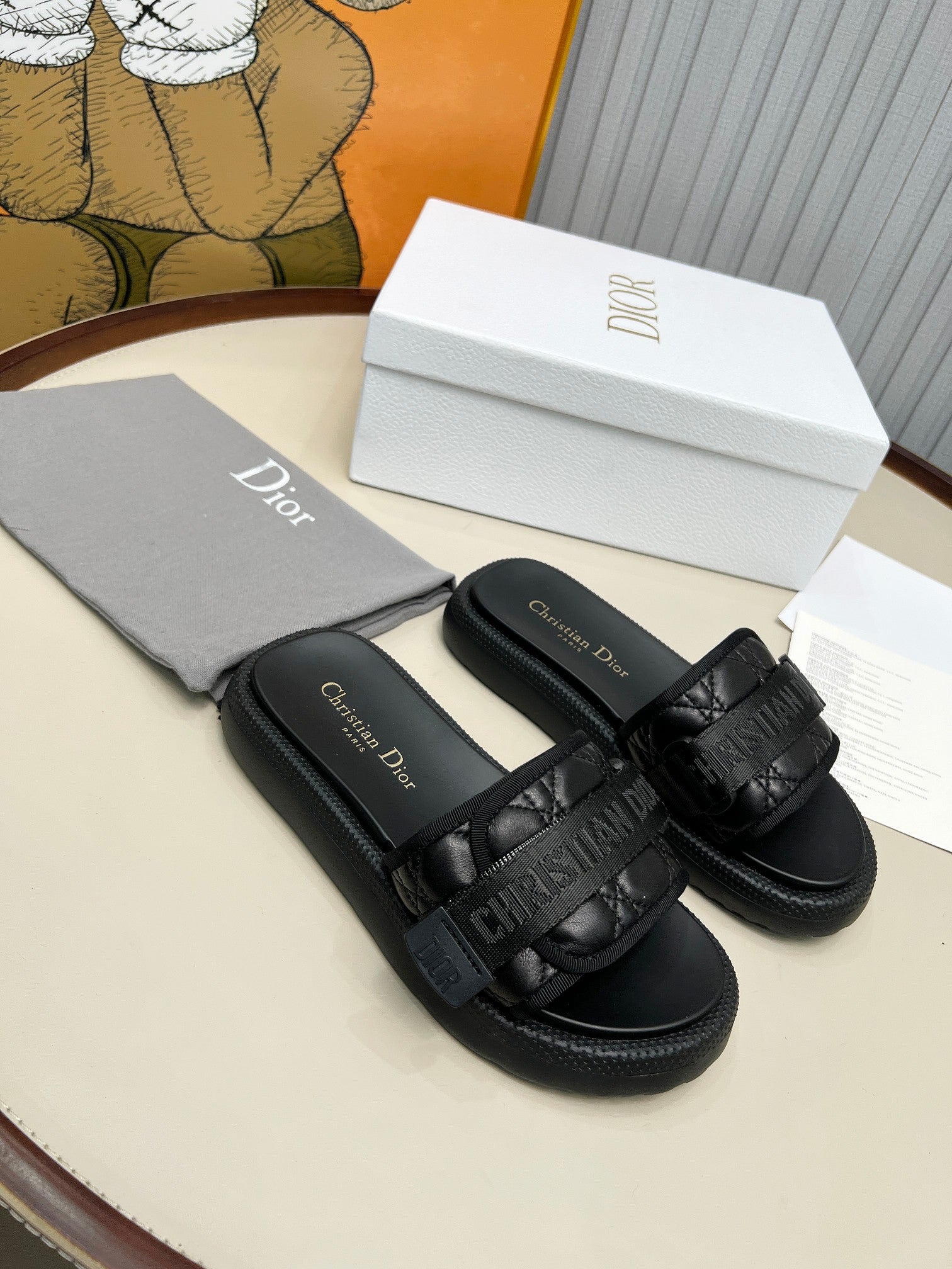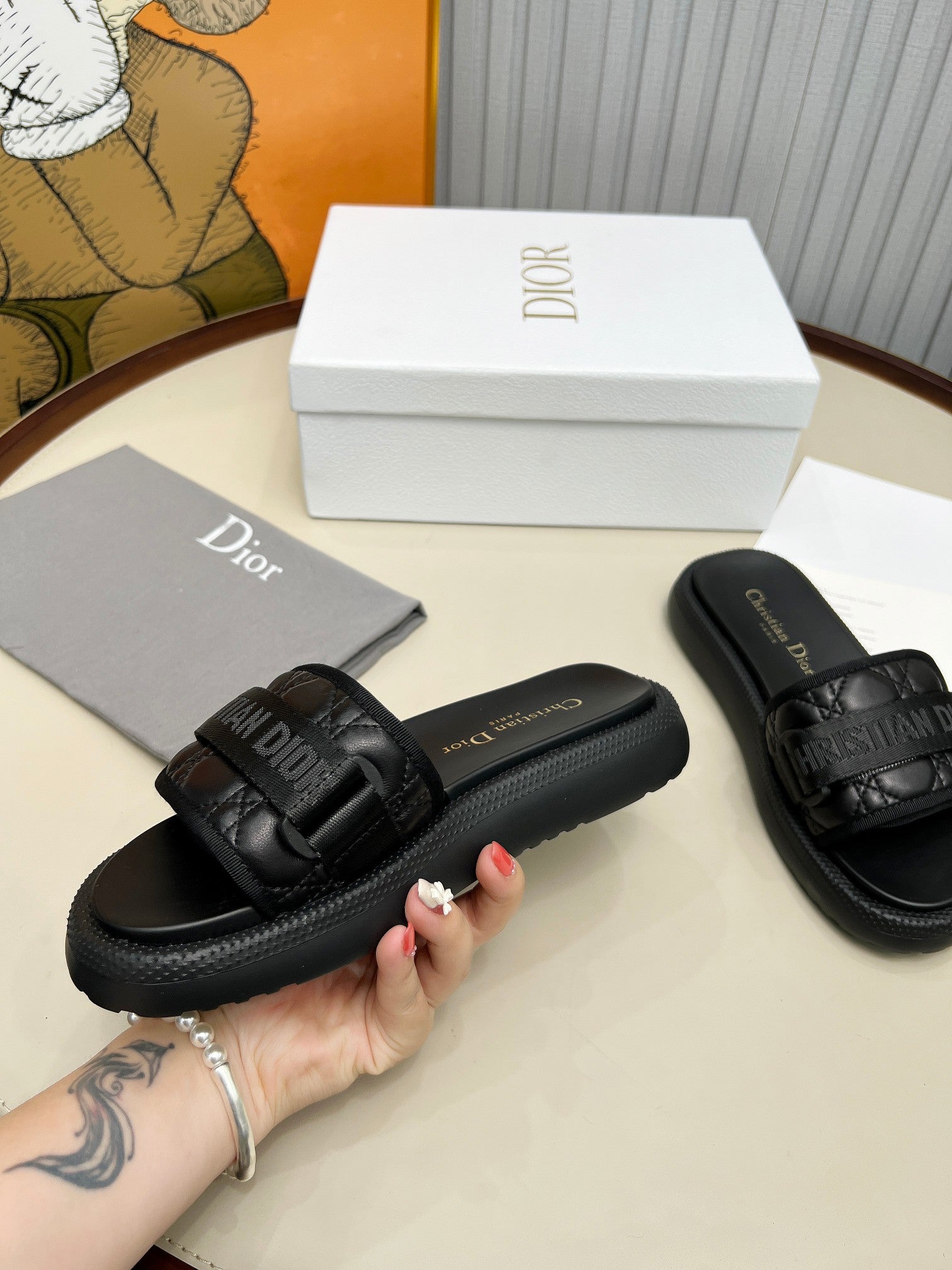 PLATFORM SLIDES 25S 50MM IN BLACK CALFSKIN AND ELECTRIC FABRIC