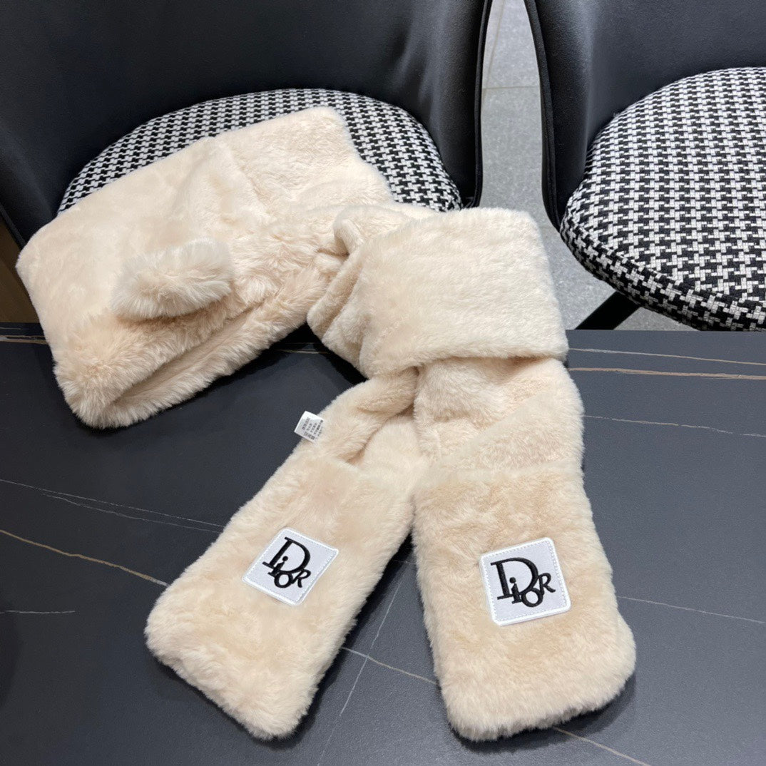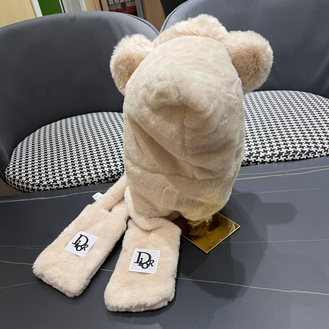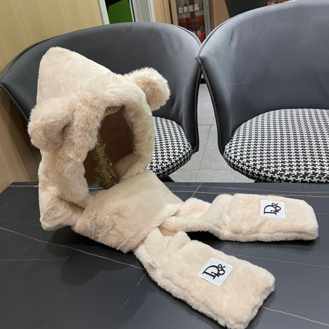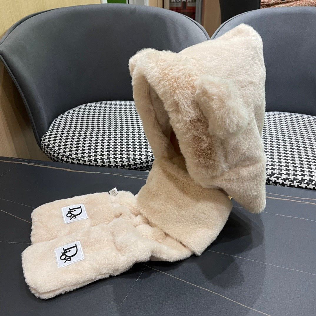 PLUSH WARM HAT IN BEIGE RABBIT FUR WITH FOX EARS 439588