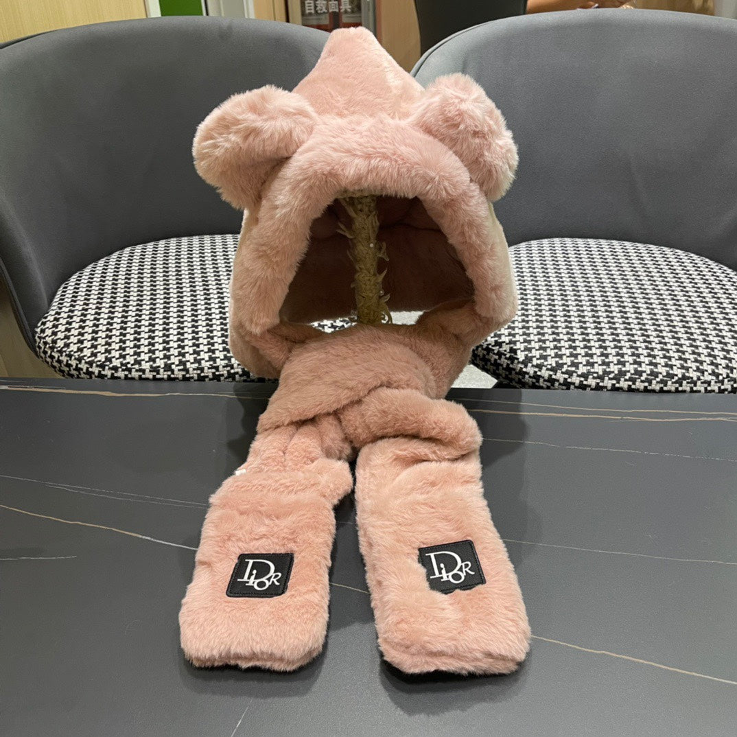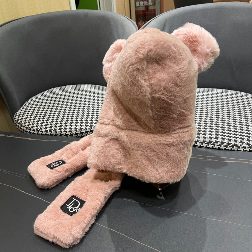 PLUSH WARM HAT IN TUSCAN BEIGE RABBIT FUR WITH FOX EARS 439585