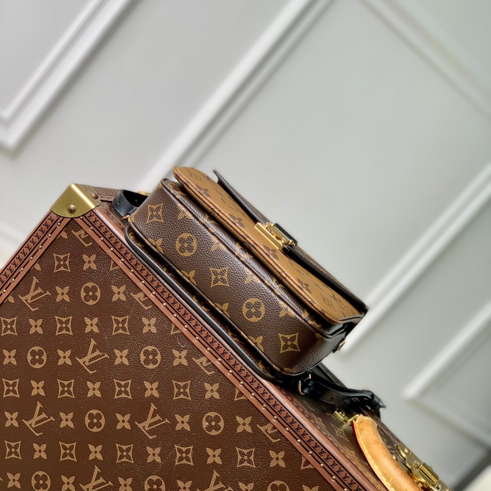 POCHETTE MÉTIS 20 IN BROWN MONOGRAM AND MONOGRAM REVERSE CANVAS GOLD BUCKLE