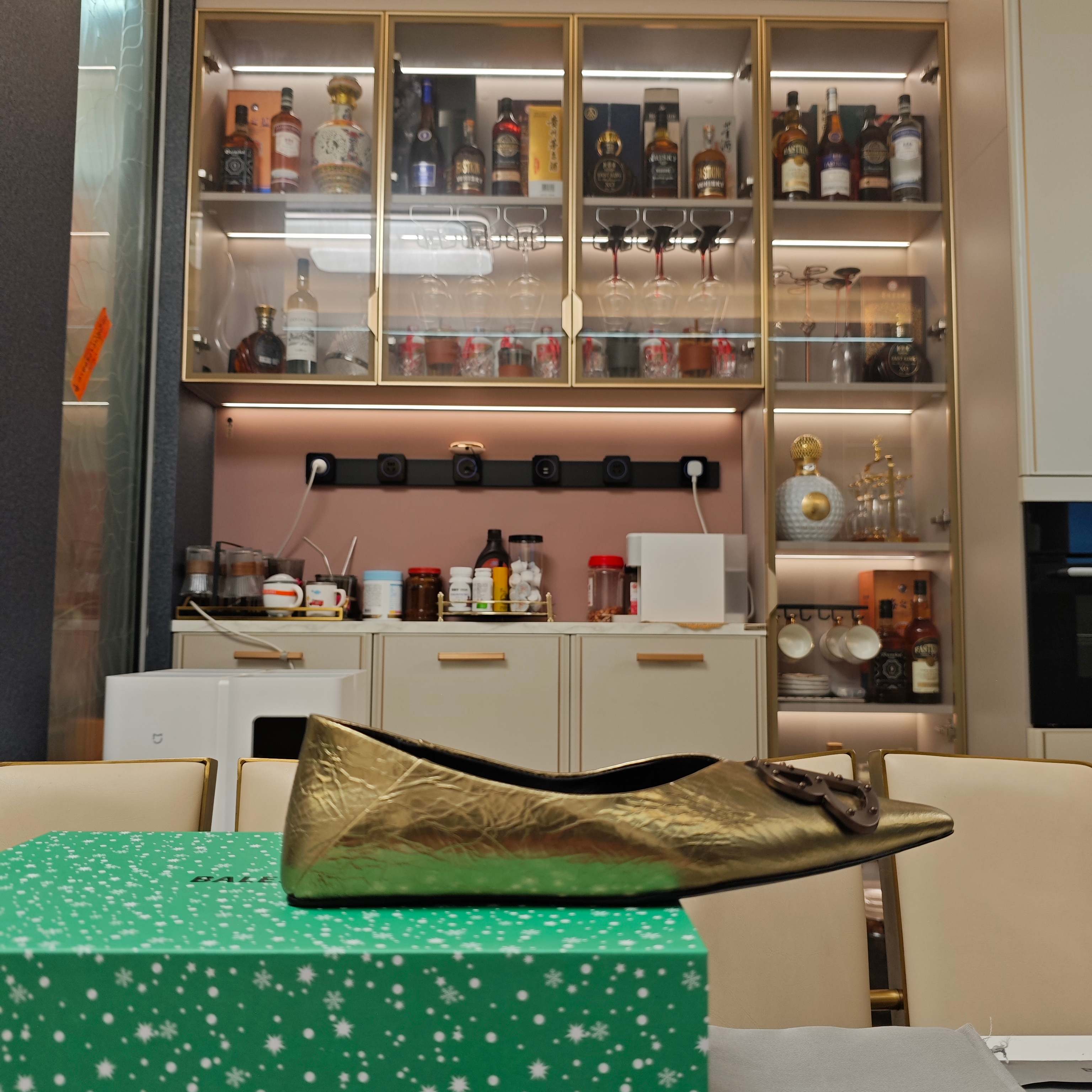 POINTED BALLET FLATS IN GOLD METALLIC SHINY CRACKED SHEEPSKIN