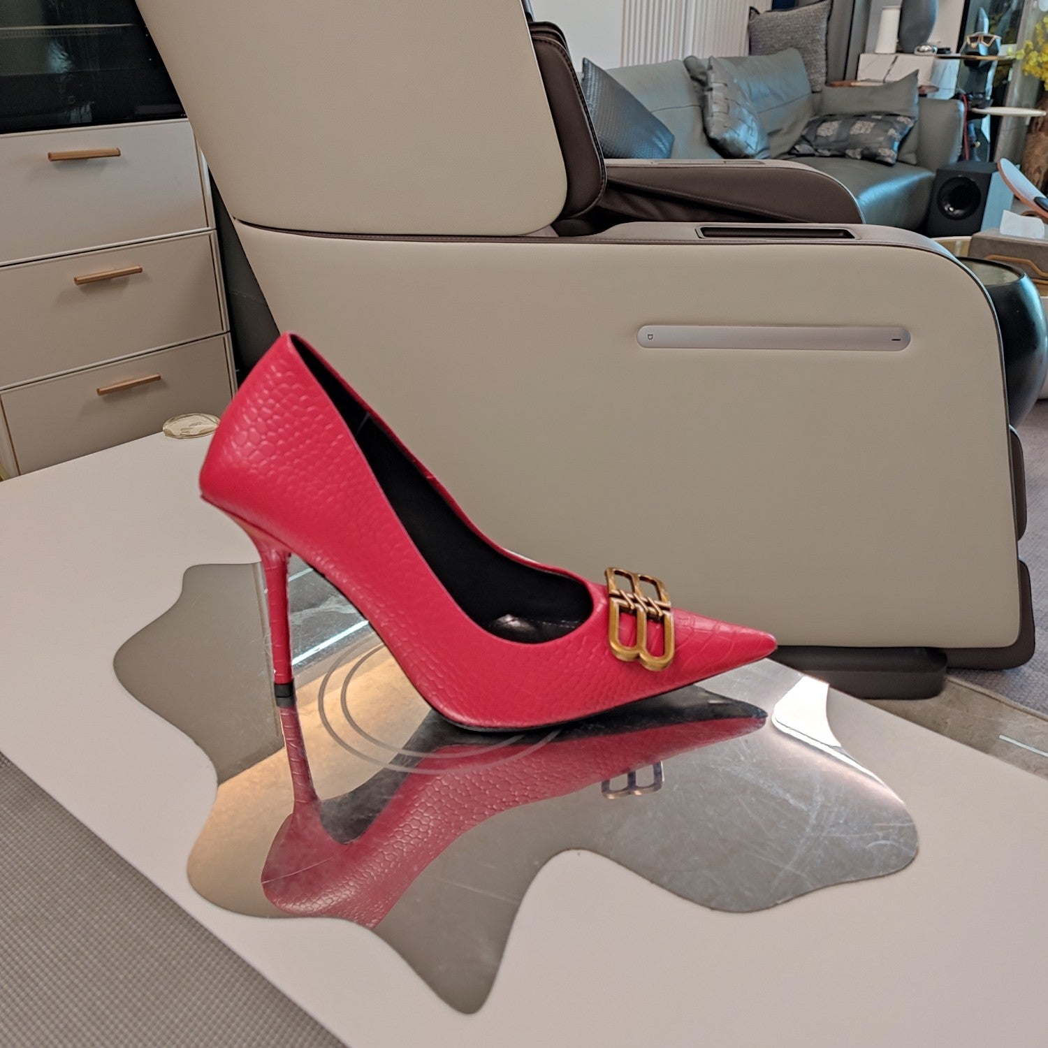 POINTED BB GOLD BUCKLE HIGH PUMPS IN RED CROCODILE PATTERN CALFSKIN
