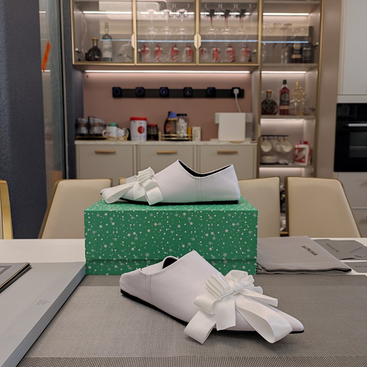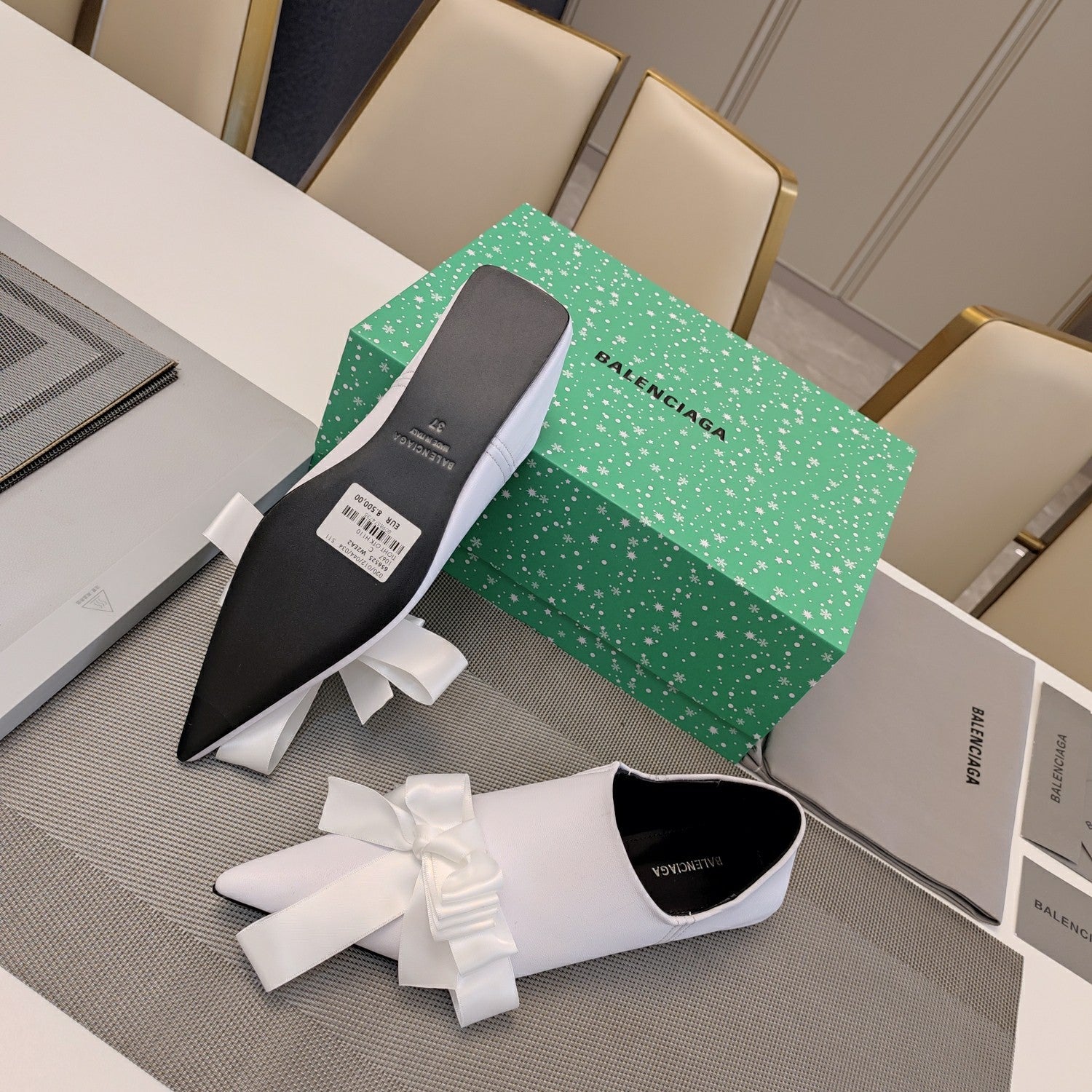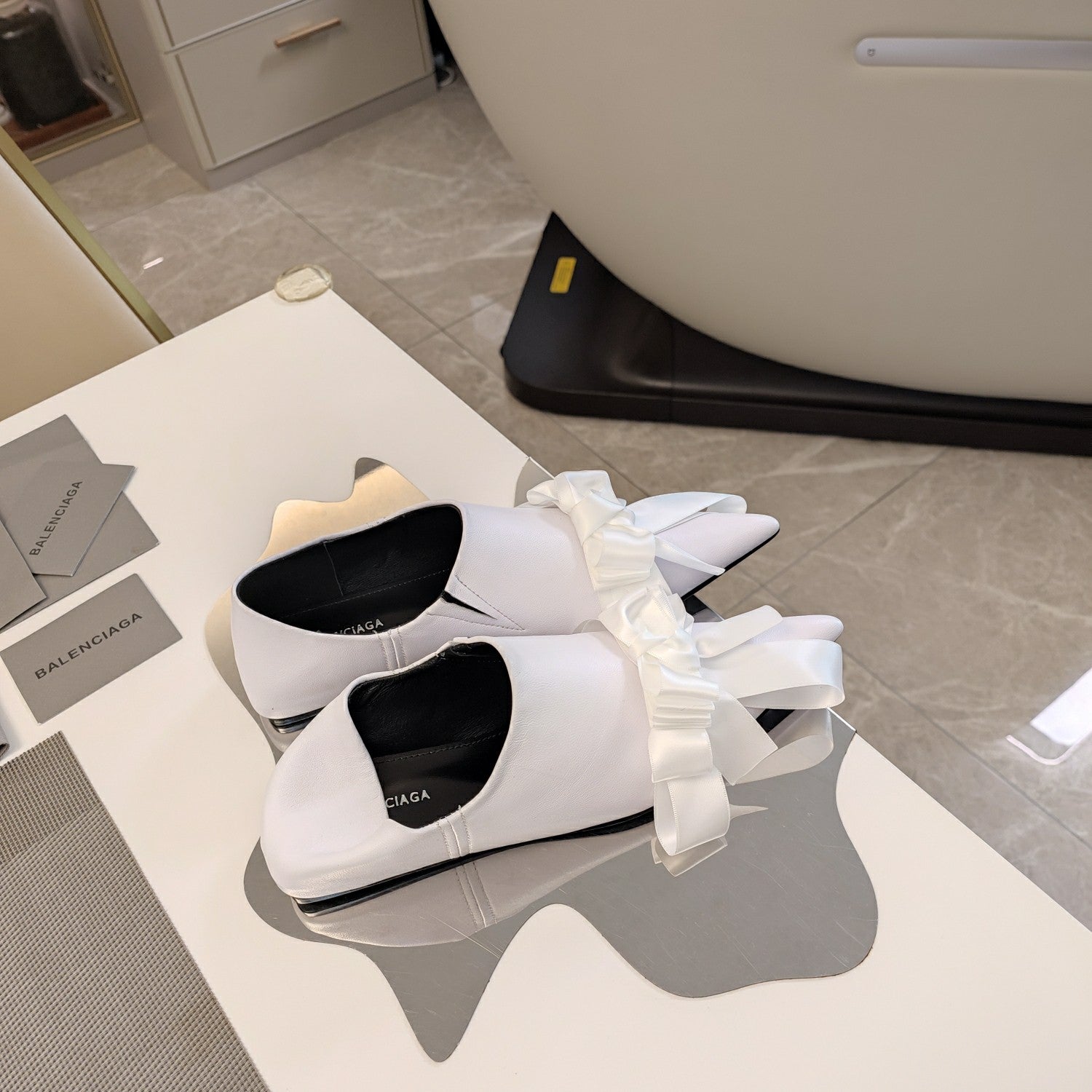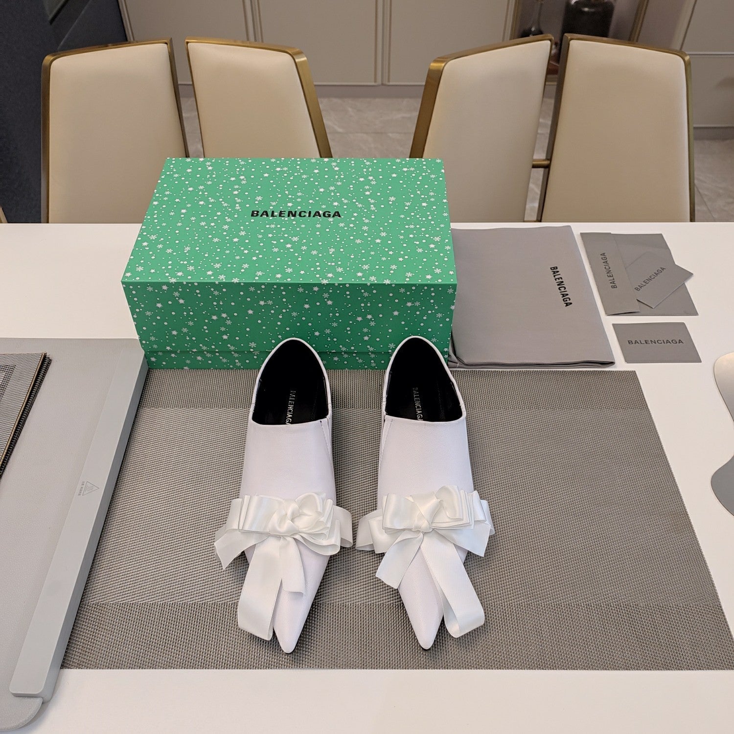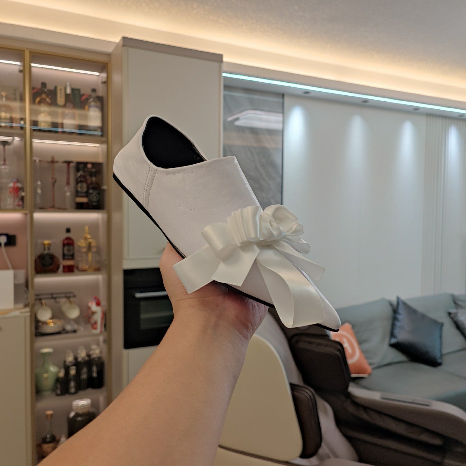 POINTED-TOE FLATS WITH BOW IN WHITE SOFT LAMBSKIN