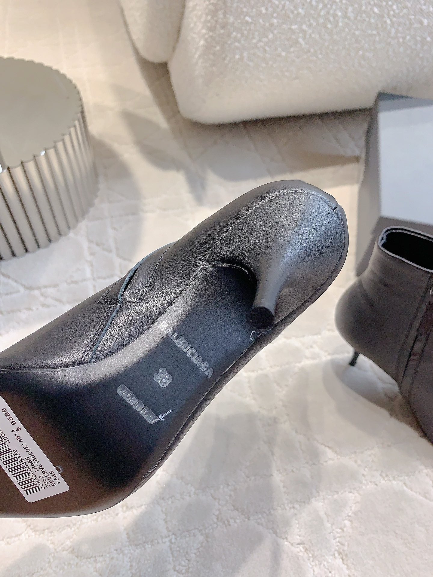POINTED-TOE HIGH HEEL BOOTS IN BLACK SMOOTH LAMBSKIN