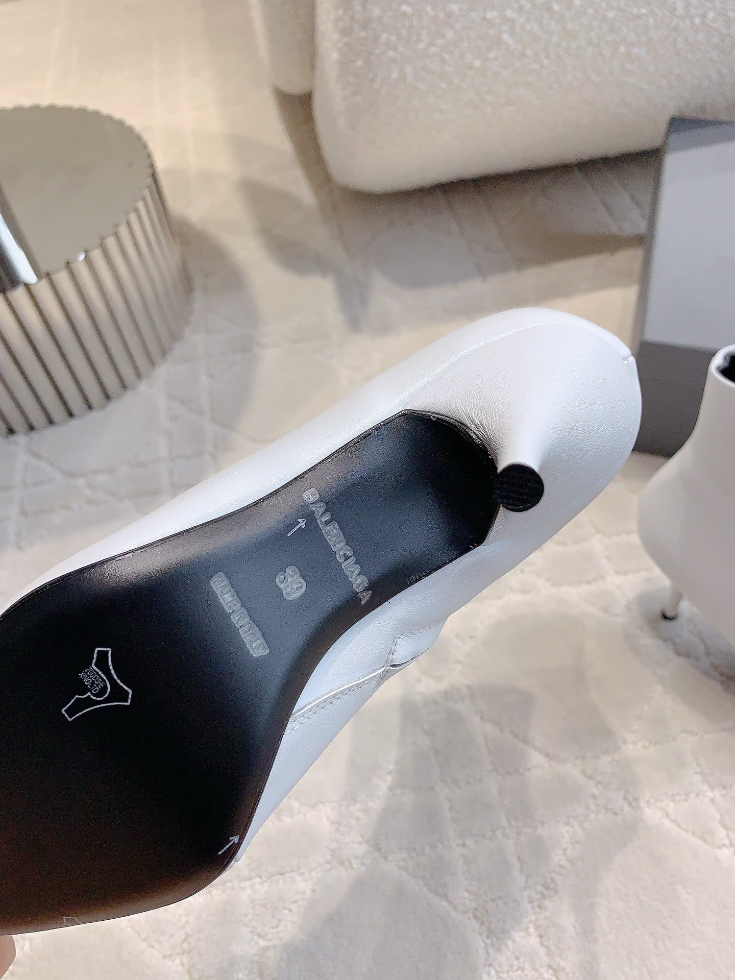 POINTED-TOE HIGH HEEL BOOTS IN WHITE SMOOTH LAMBSKIN
