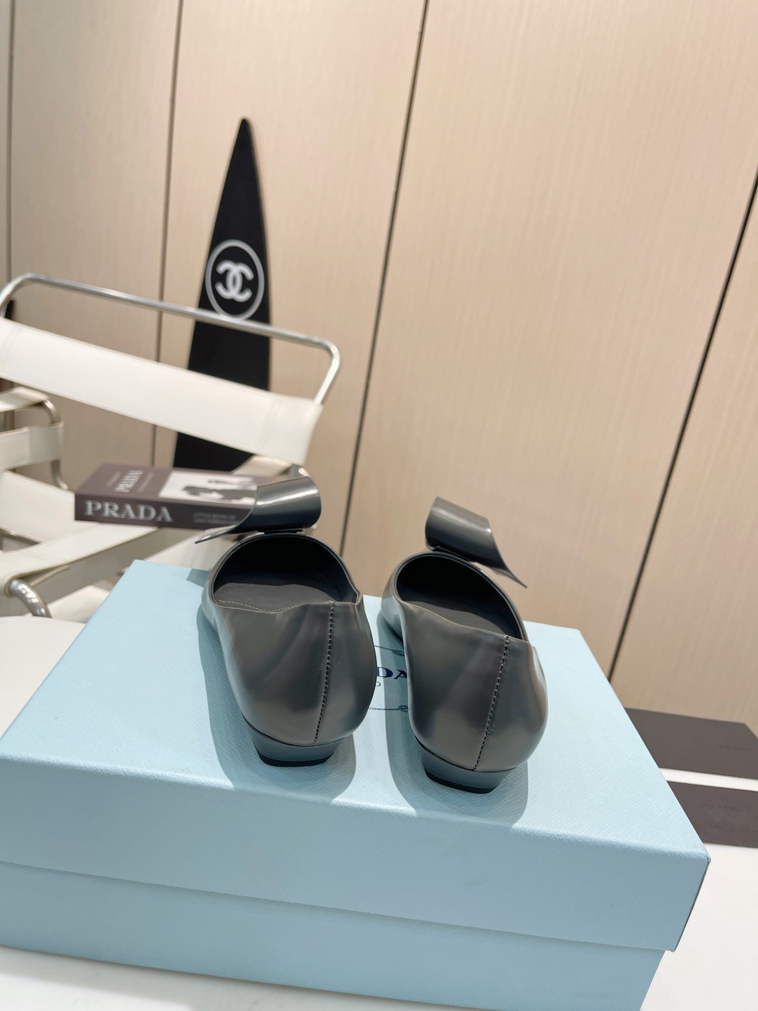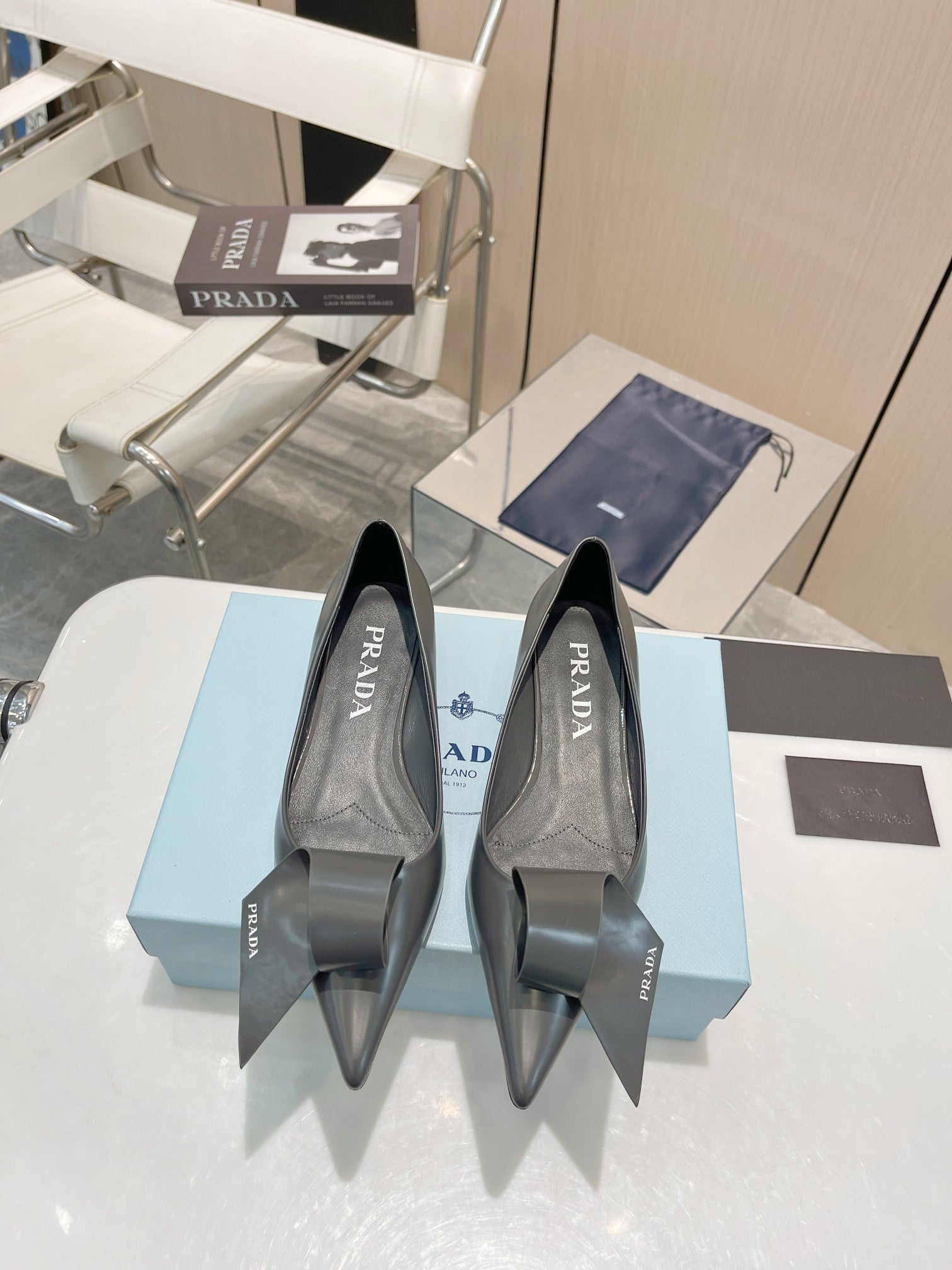 POINTED TOE PUMPS KITTEN HEEL IN GRAY GLOSSY LAMBSKIN WITH BOW