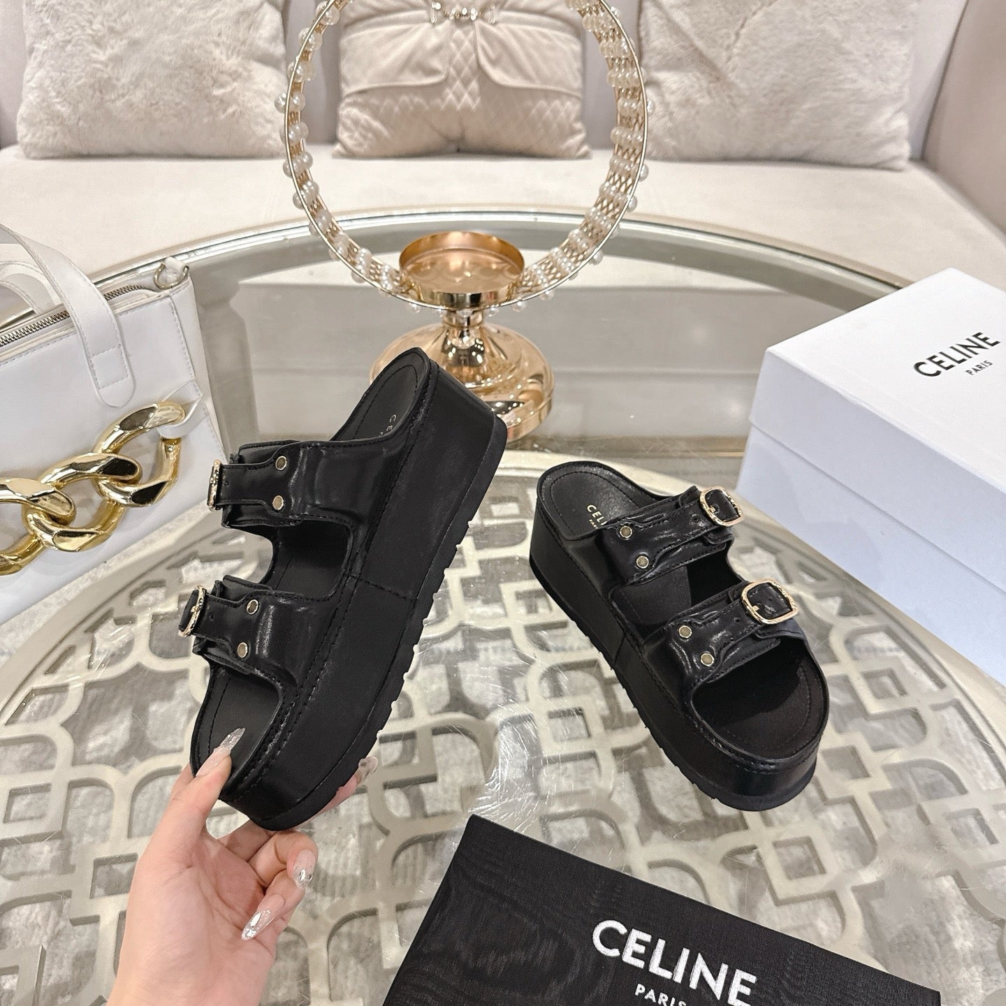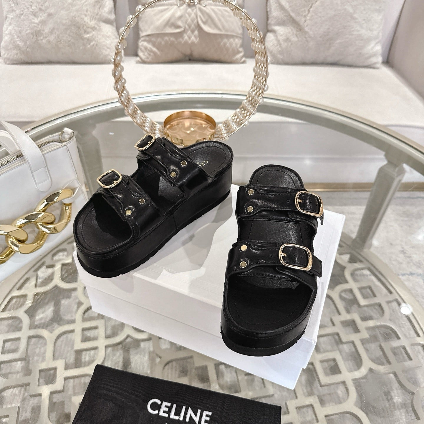 POLLY WEDGE MULE IN BLACK SHINY CALFSKIN