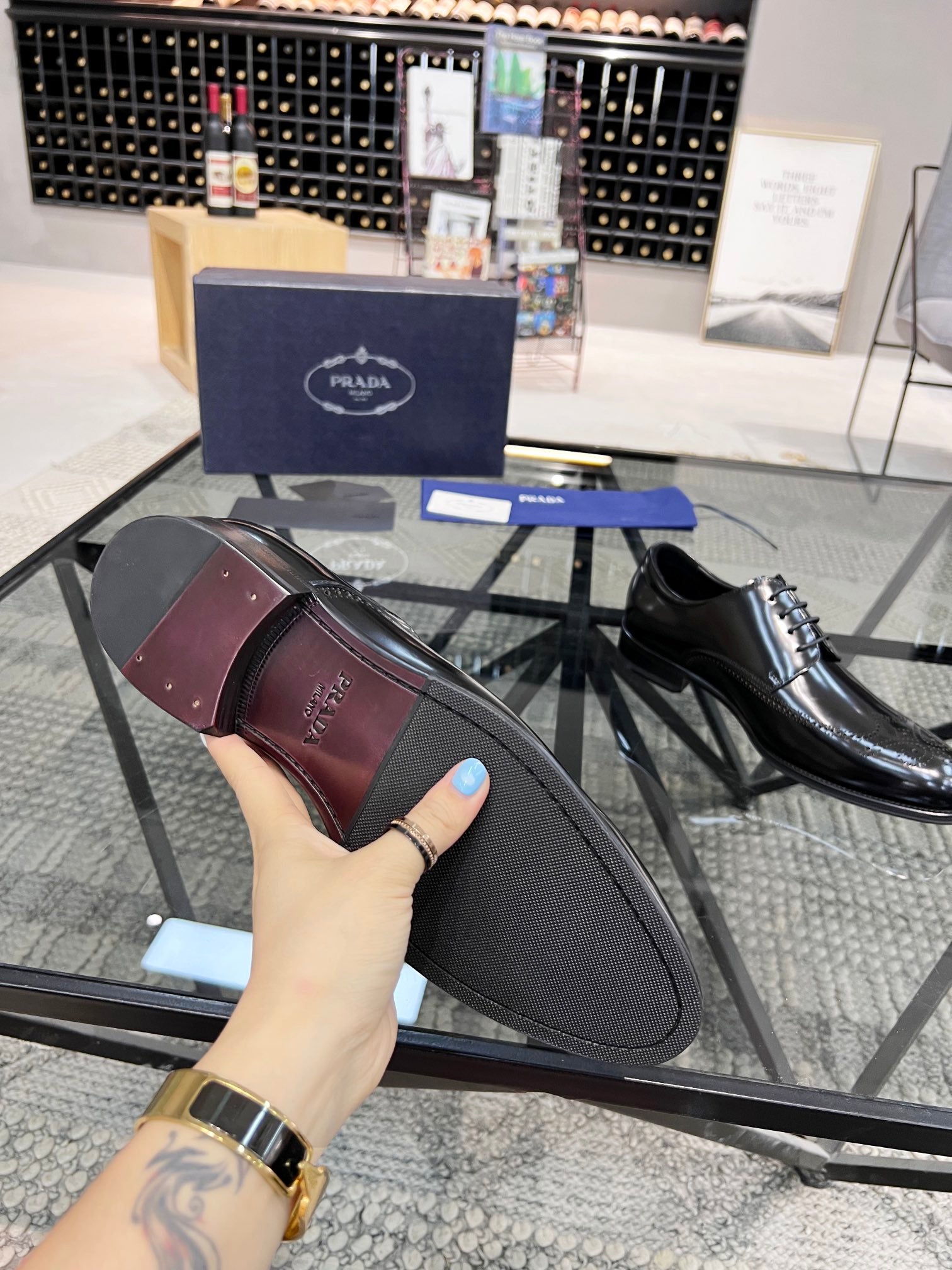 PRA BRUSHED BLACK LEATHER DERBY BROGUE SHOES