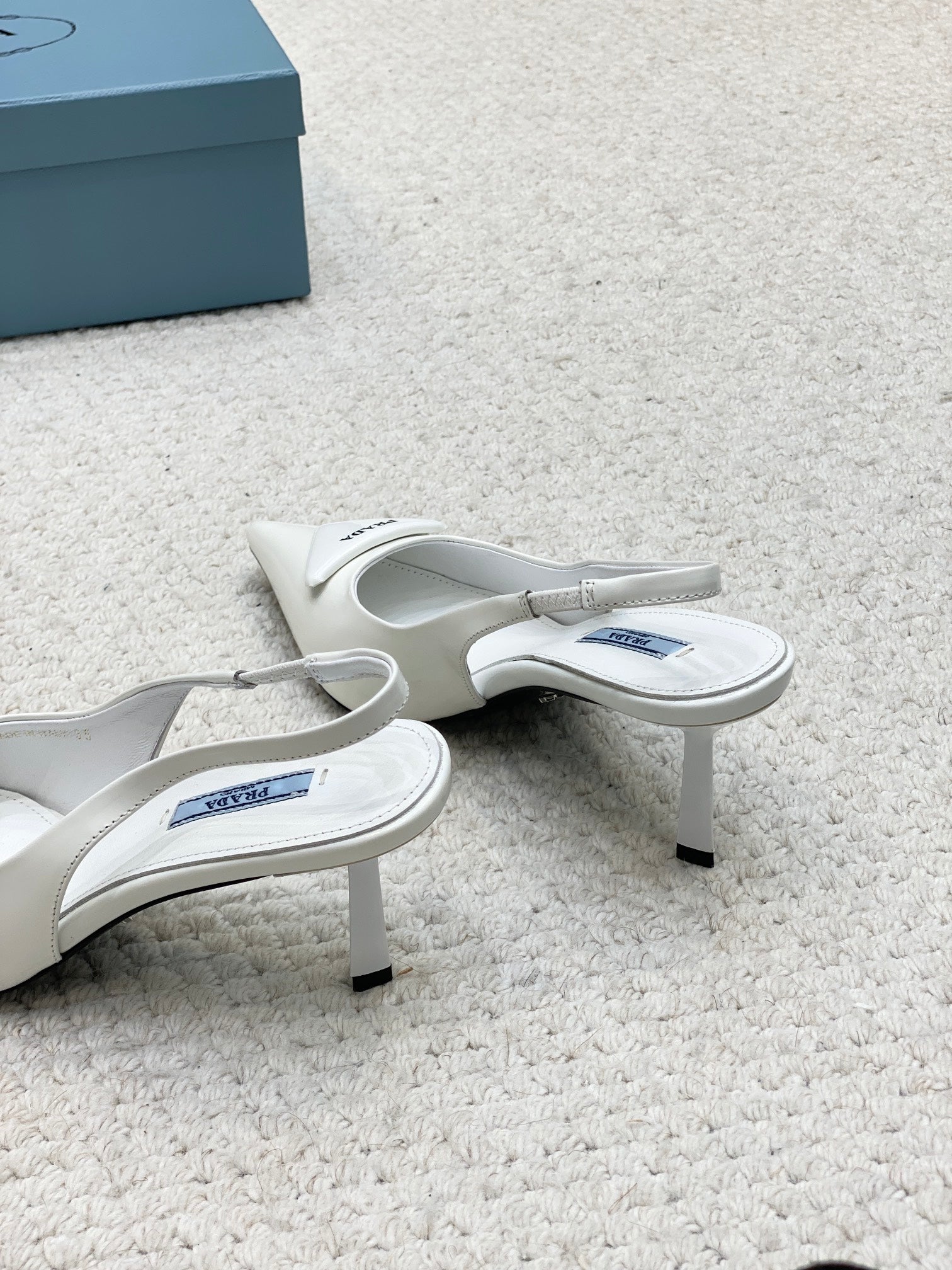 PRA BRUSHED LEATHER SLINGBACK PUMPS 75 WHITE