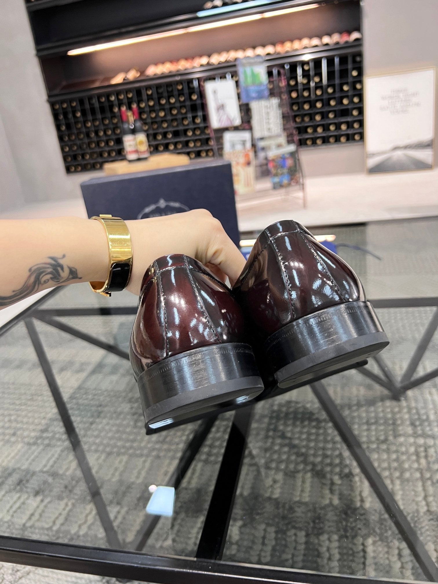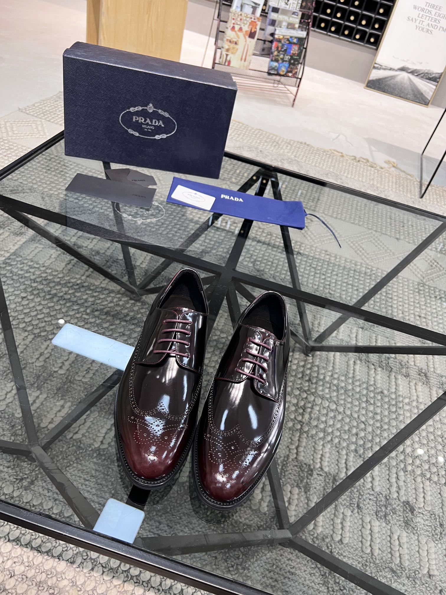 PRA BRUSHED WINE RED OMBRE LEATHER DERBY BROGUE SHOES