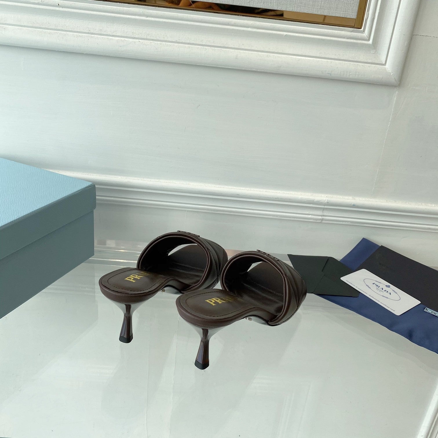Pra Heeled Sandal 65 Pointed Sole Quilted Chocolate Leather
