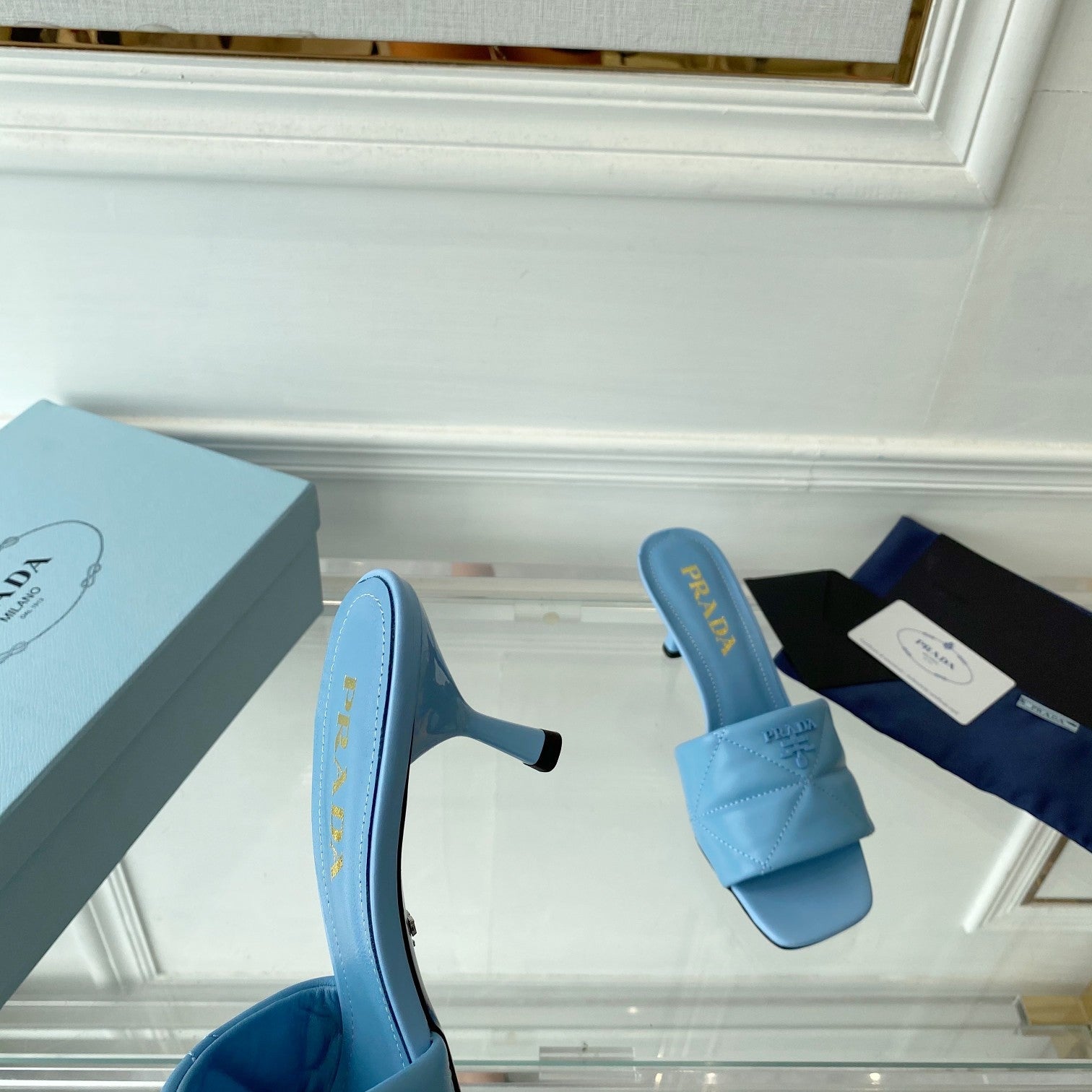 Pra Heeled Sandal 65 Pointed Sole Quilted Sky Blue Leather