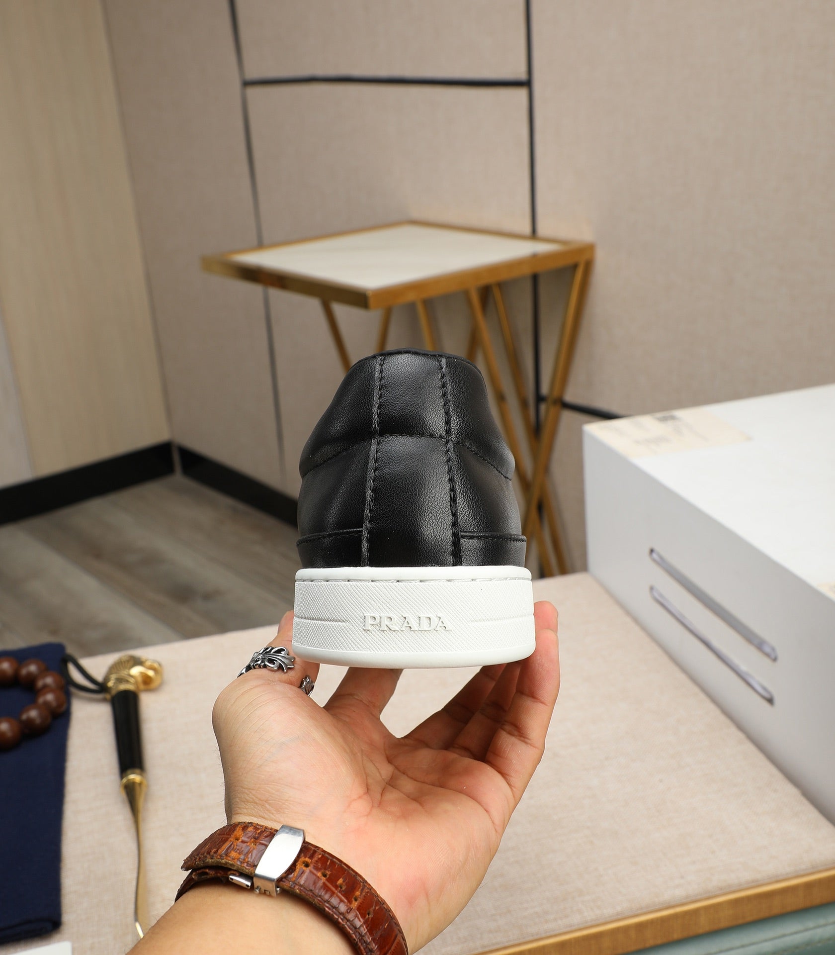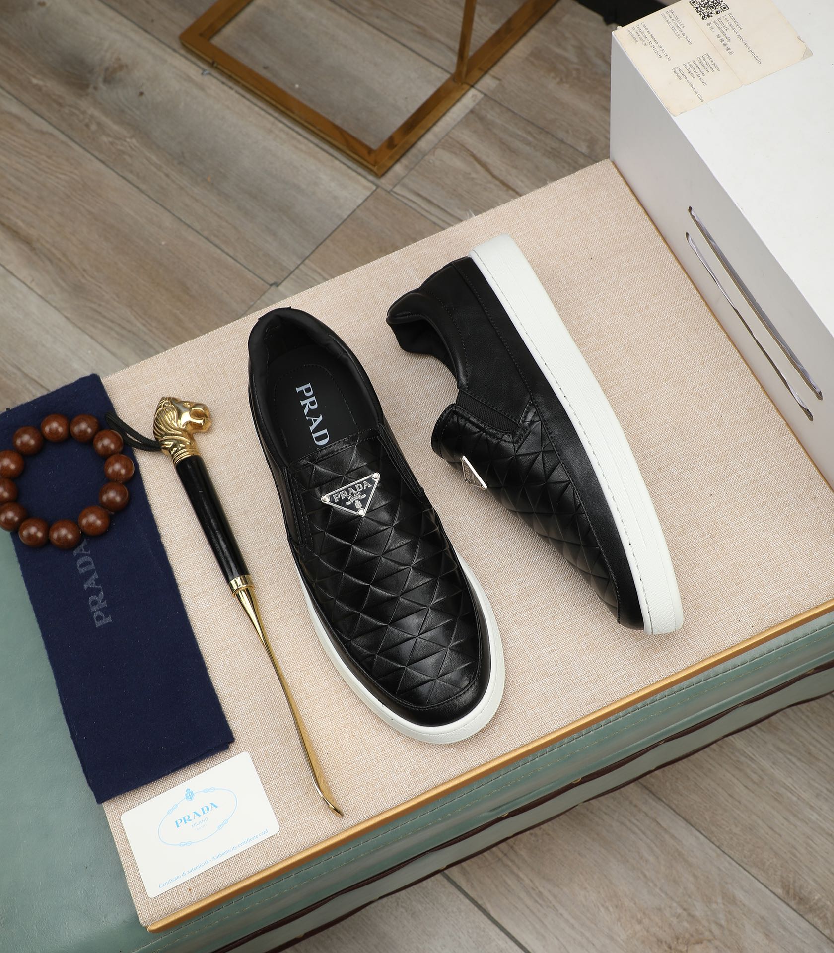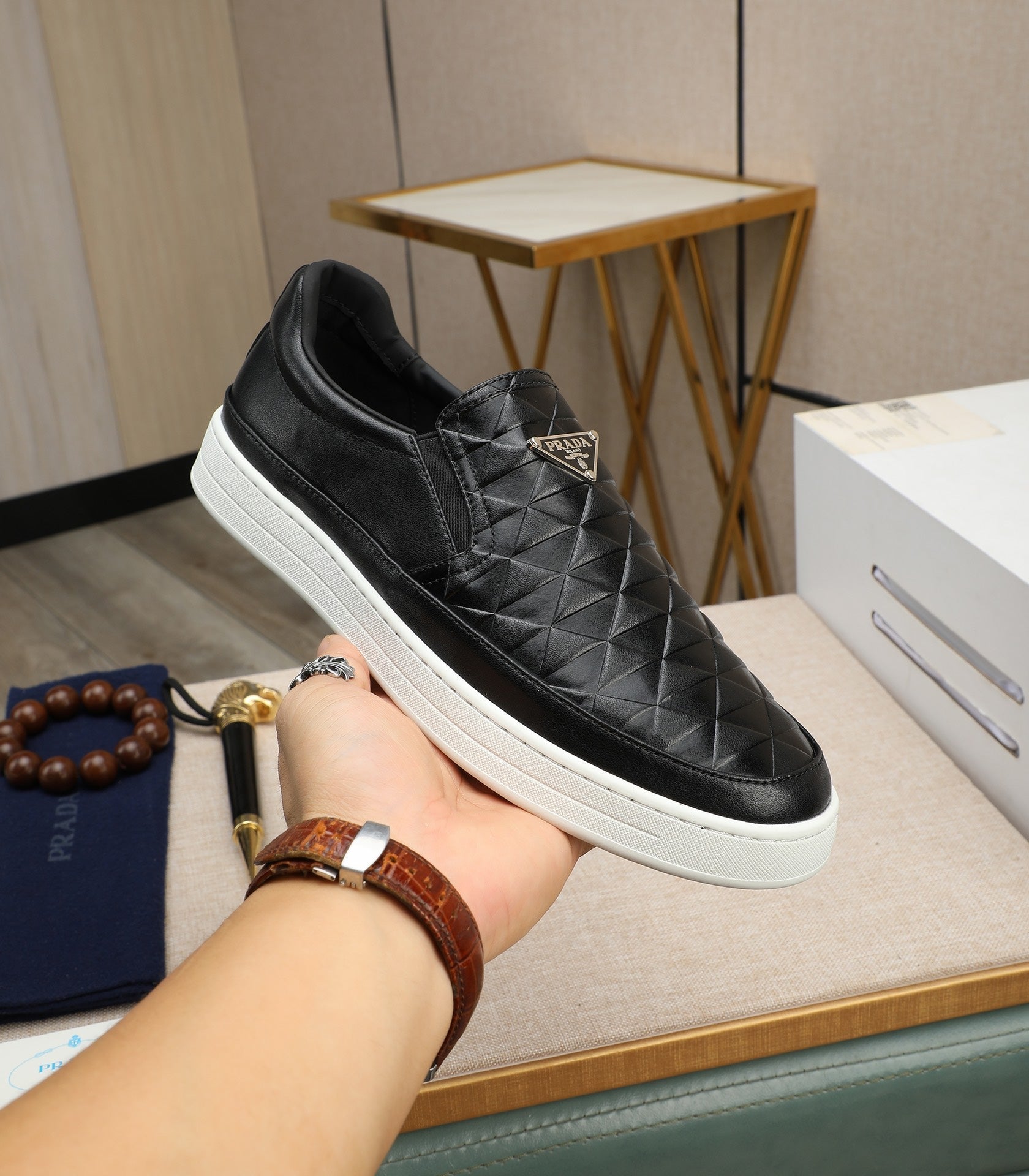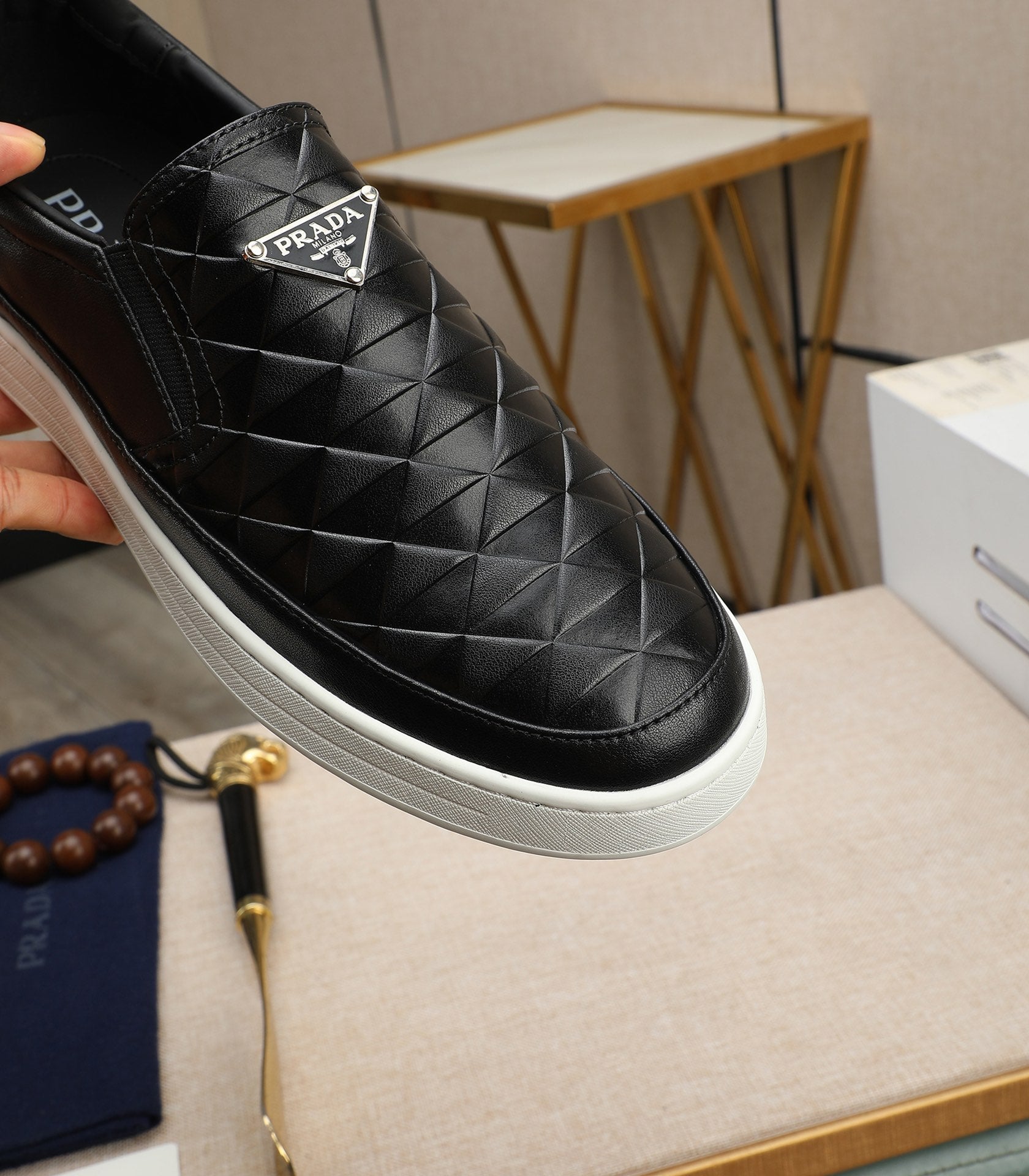 PRA LOAFER IN BLACK EMBOSSED CALFSKIN