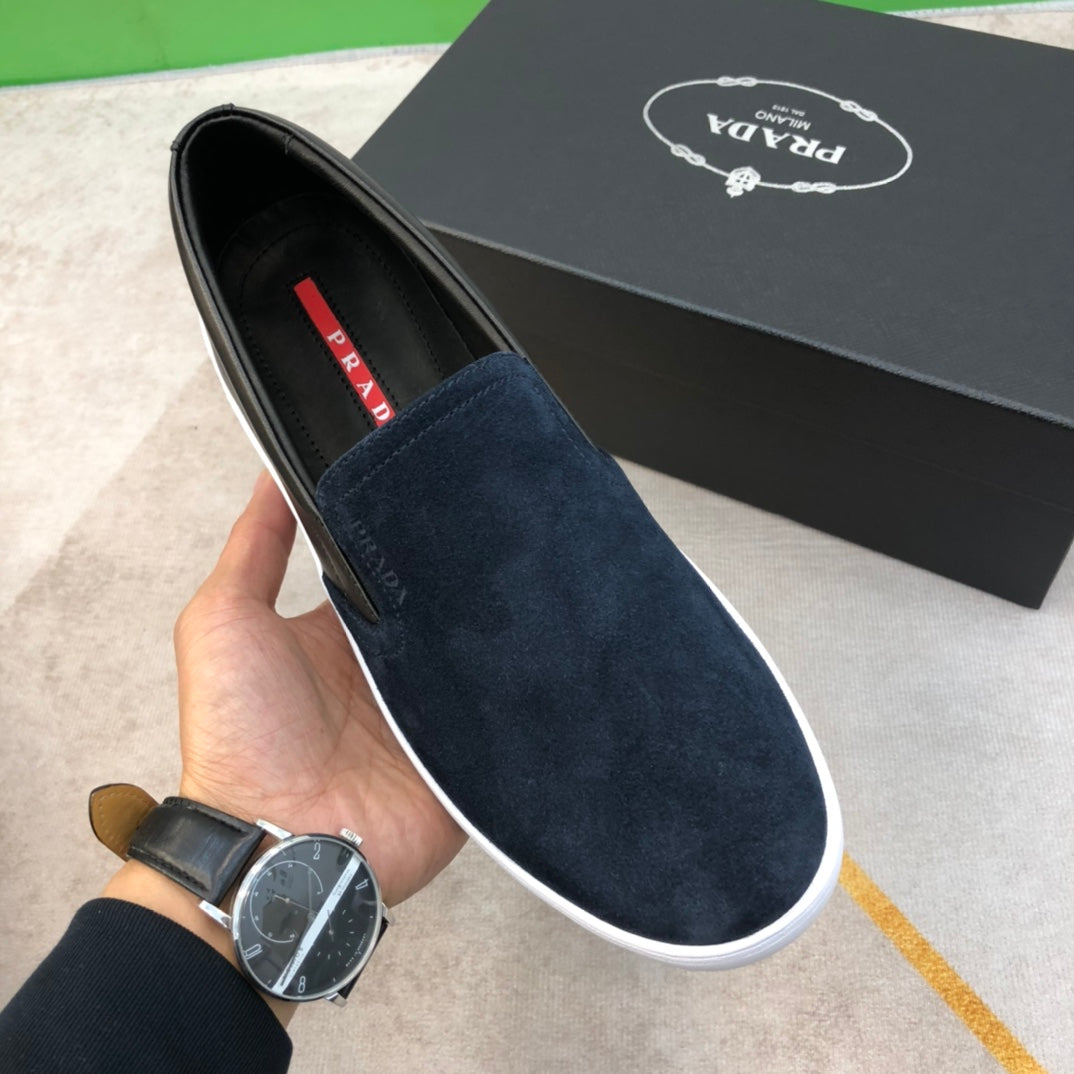 PRA LOAFER IN MIDNIGHT BLUE SUEDE AND BLACK CALFSKIN