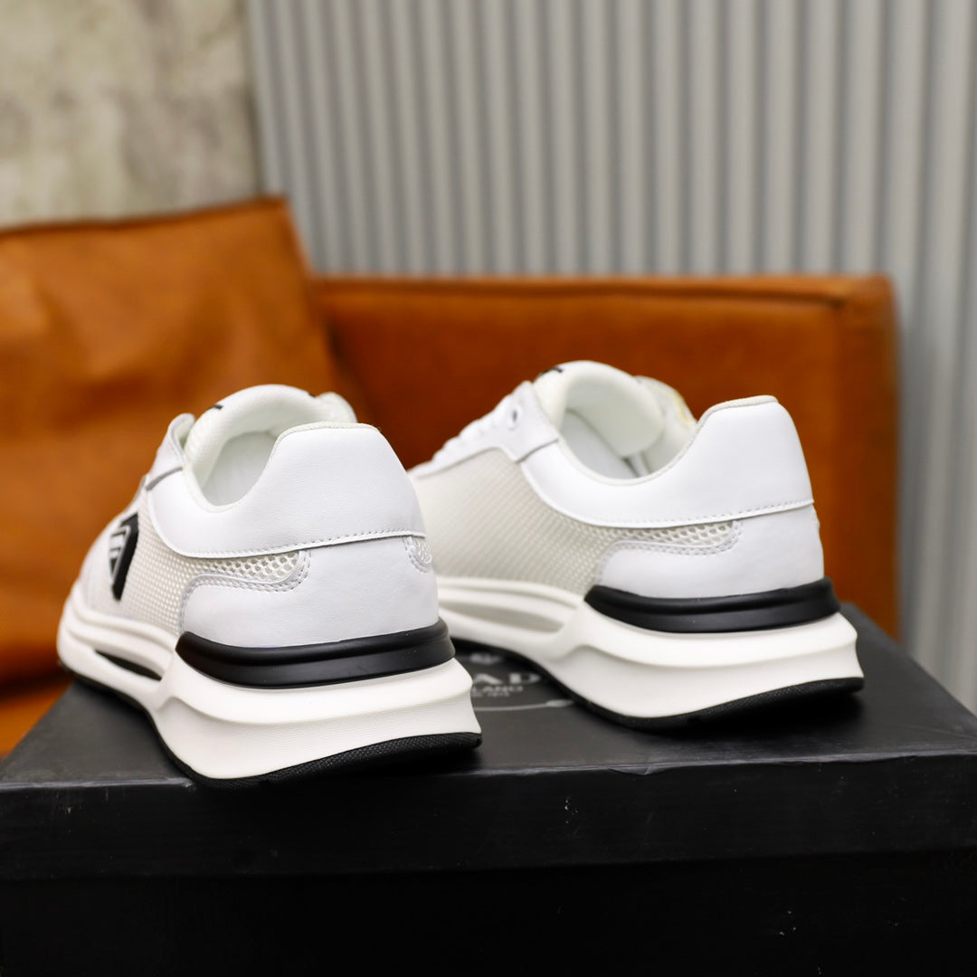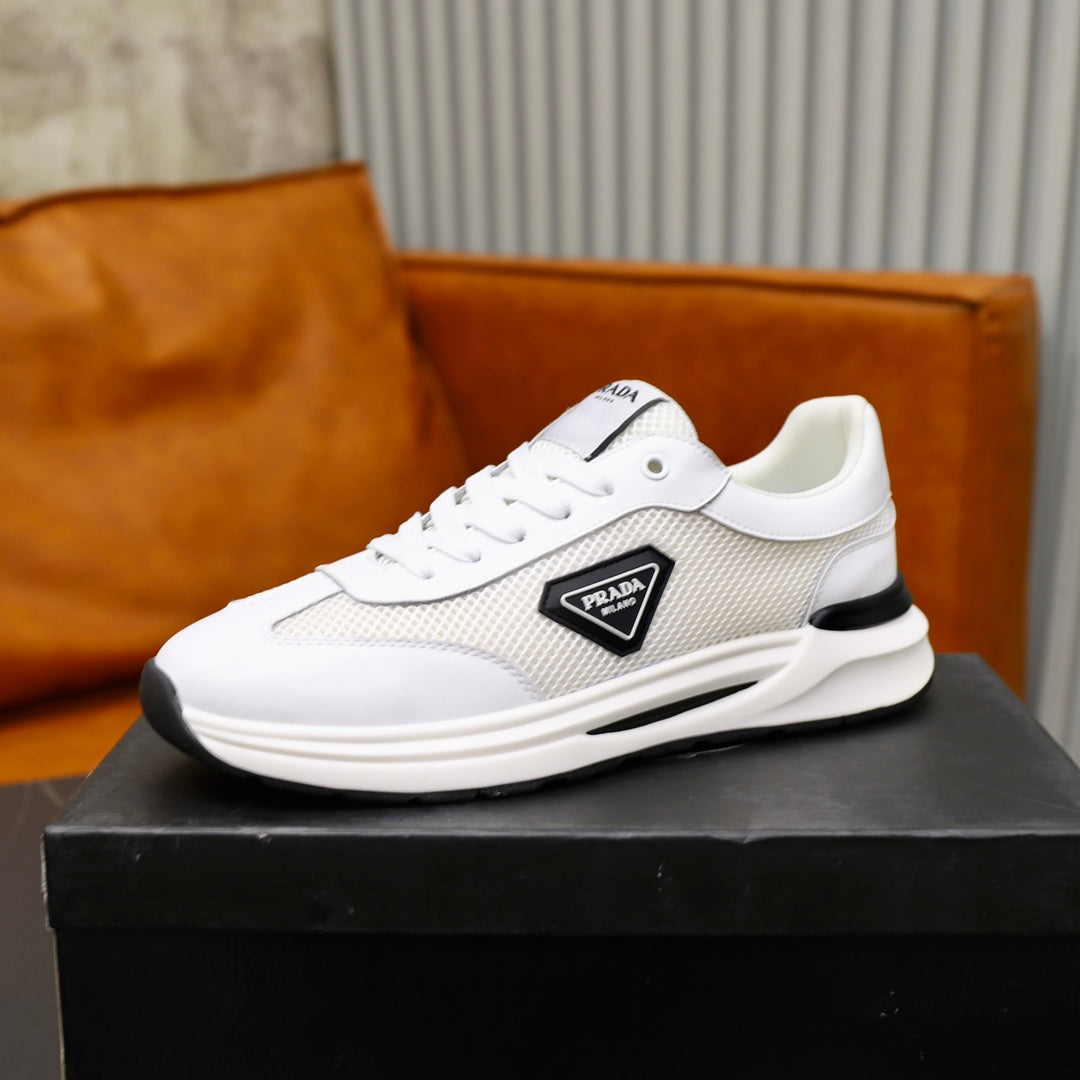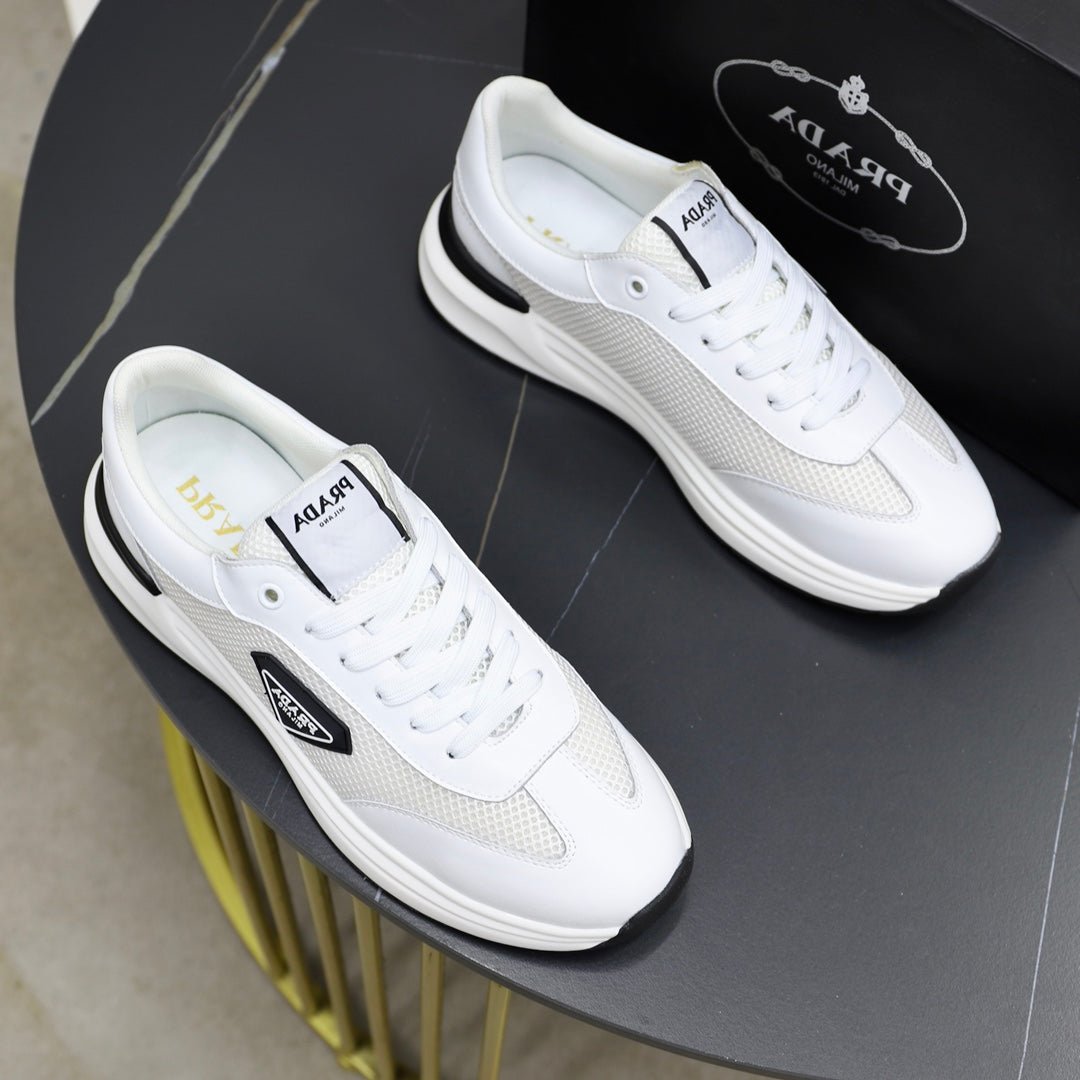 PRA SNEAKER IN WHITE CALFSKIN AND MESH FABRIC