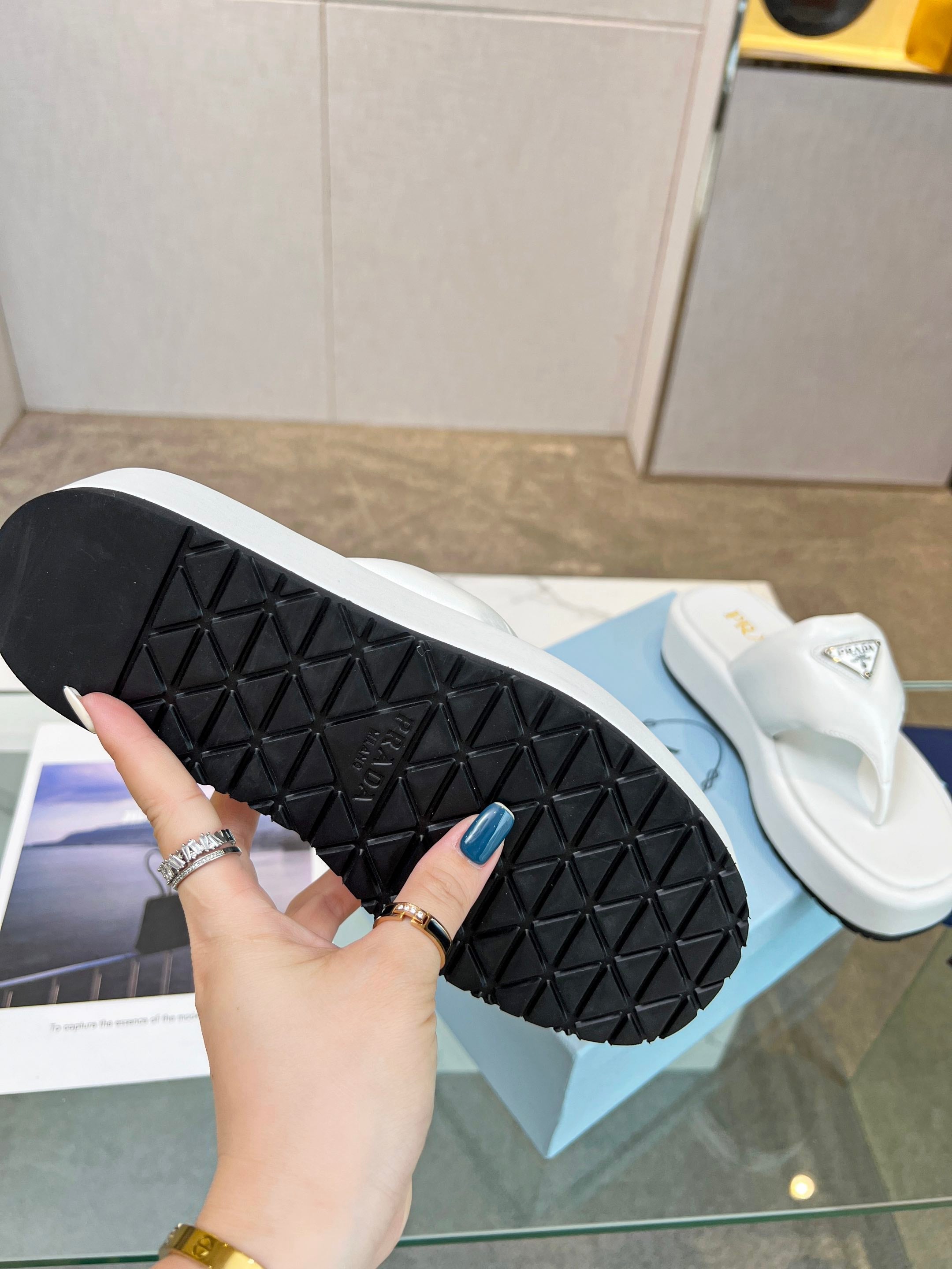 PRA SOFT PADDED NAPPA THONG WEDGE SANDALS WHITE LAMBSKIN