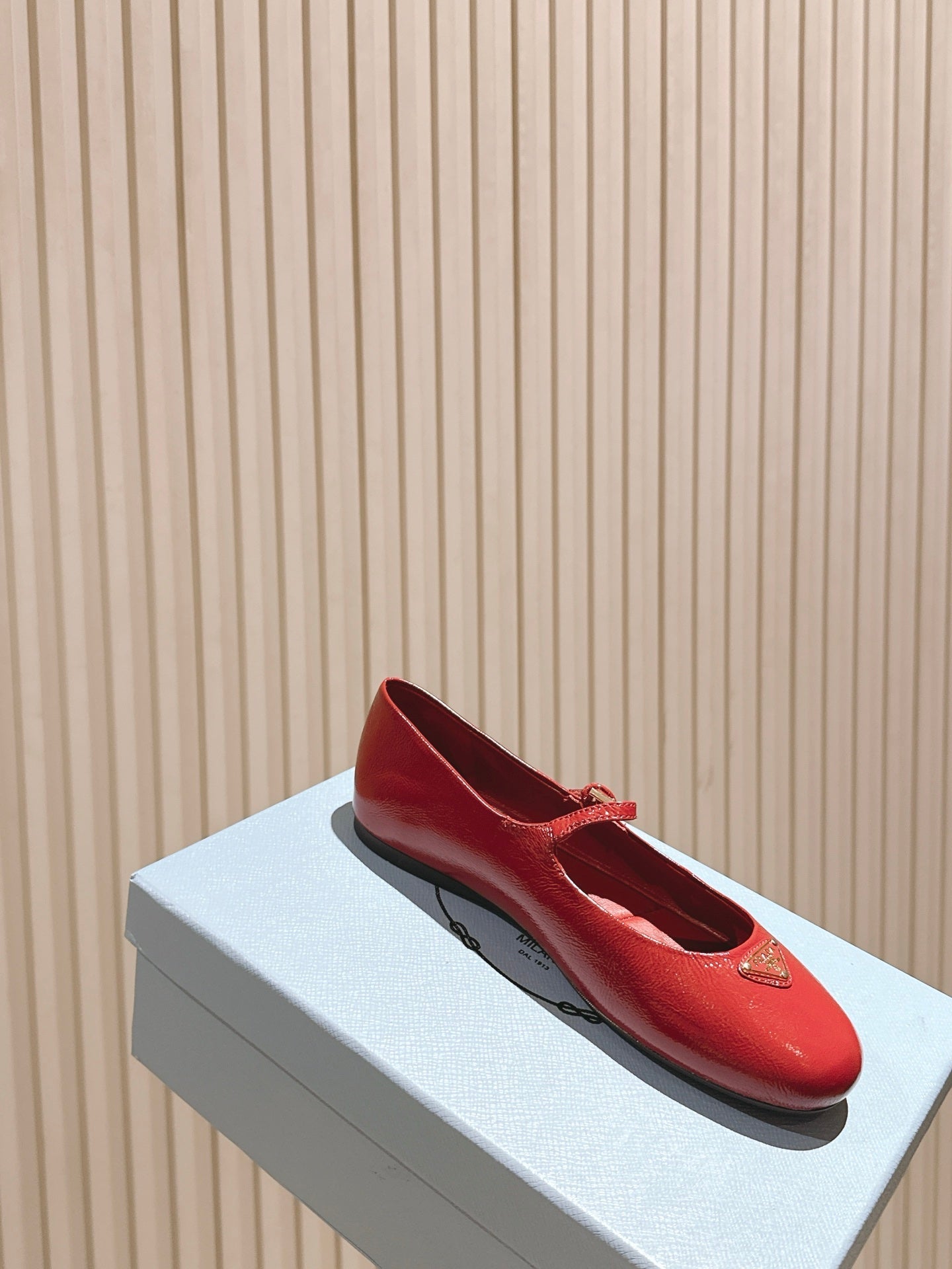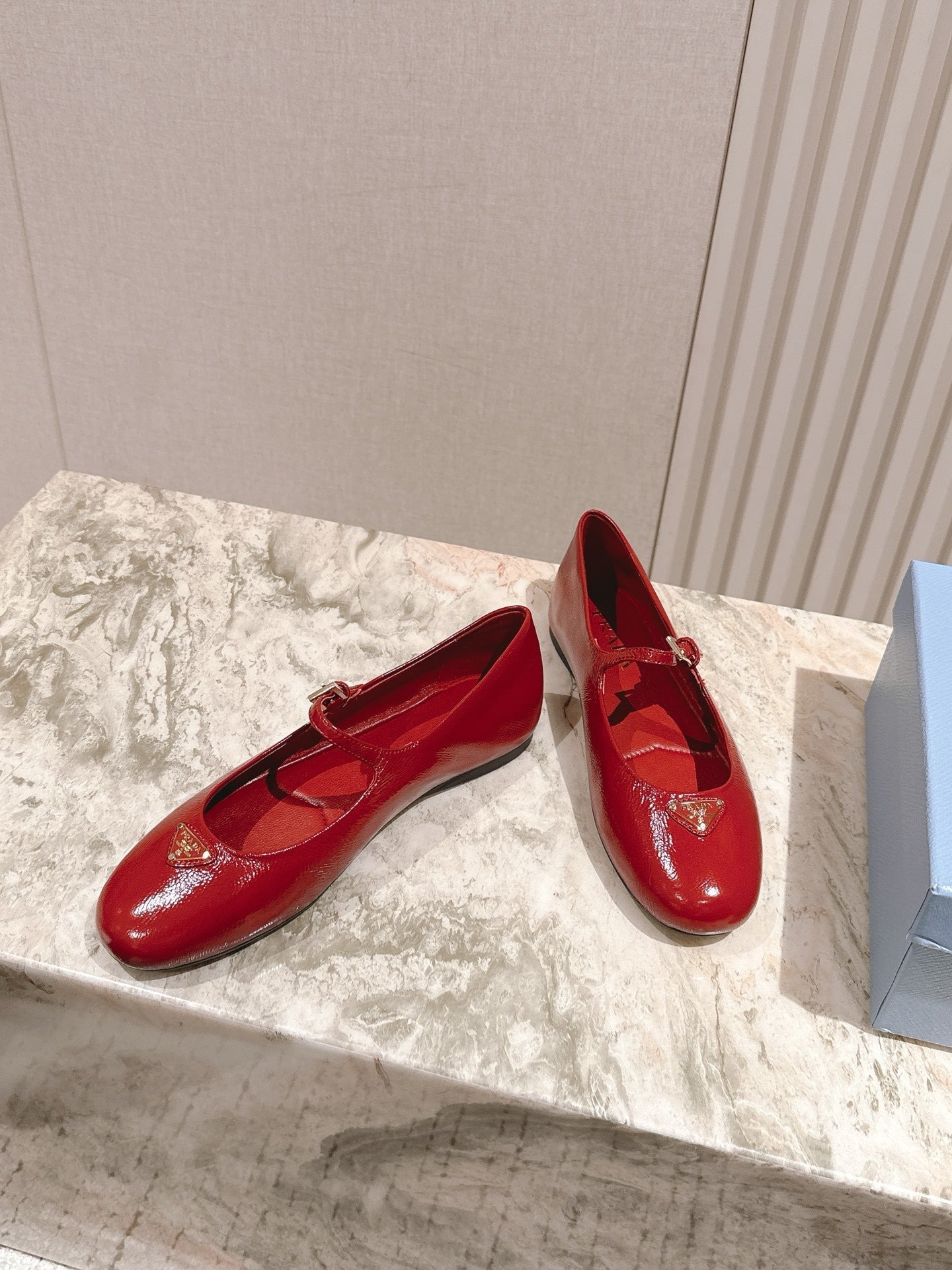 PRADA 25S BALLERINAS IN RED WINE CALFSKIN GLOSSY