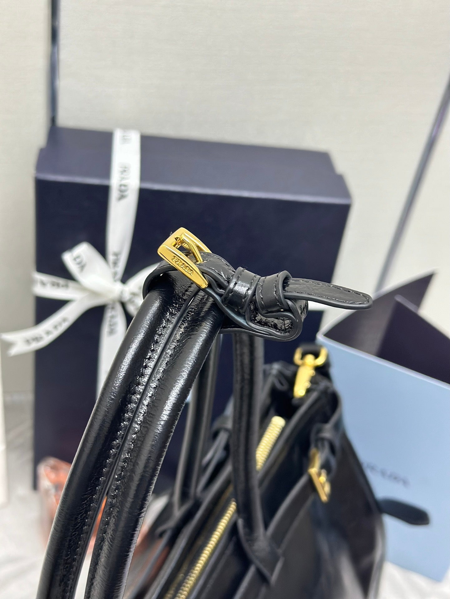 PRADA 25S BONNIE LARGE HANDBAG 38 IN BLACK GLOSSY CALFSKIN GOLD HARDWRE