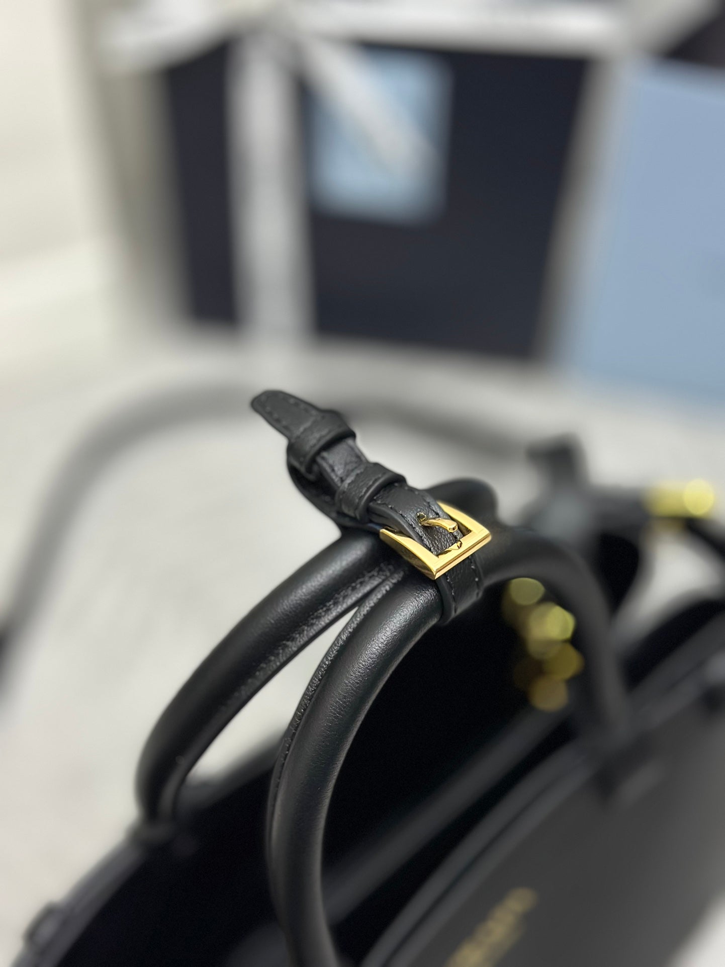 PRADA 25S BUCKLE MEDIUM HANDBAG 28 IN BLACK CALFSKIN GOLD HARDWRE