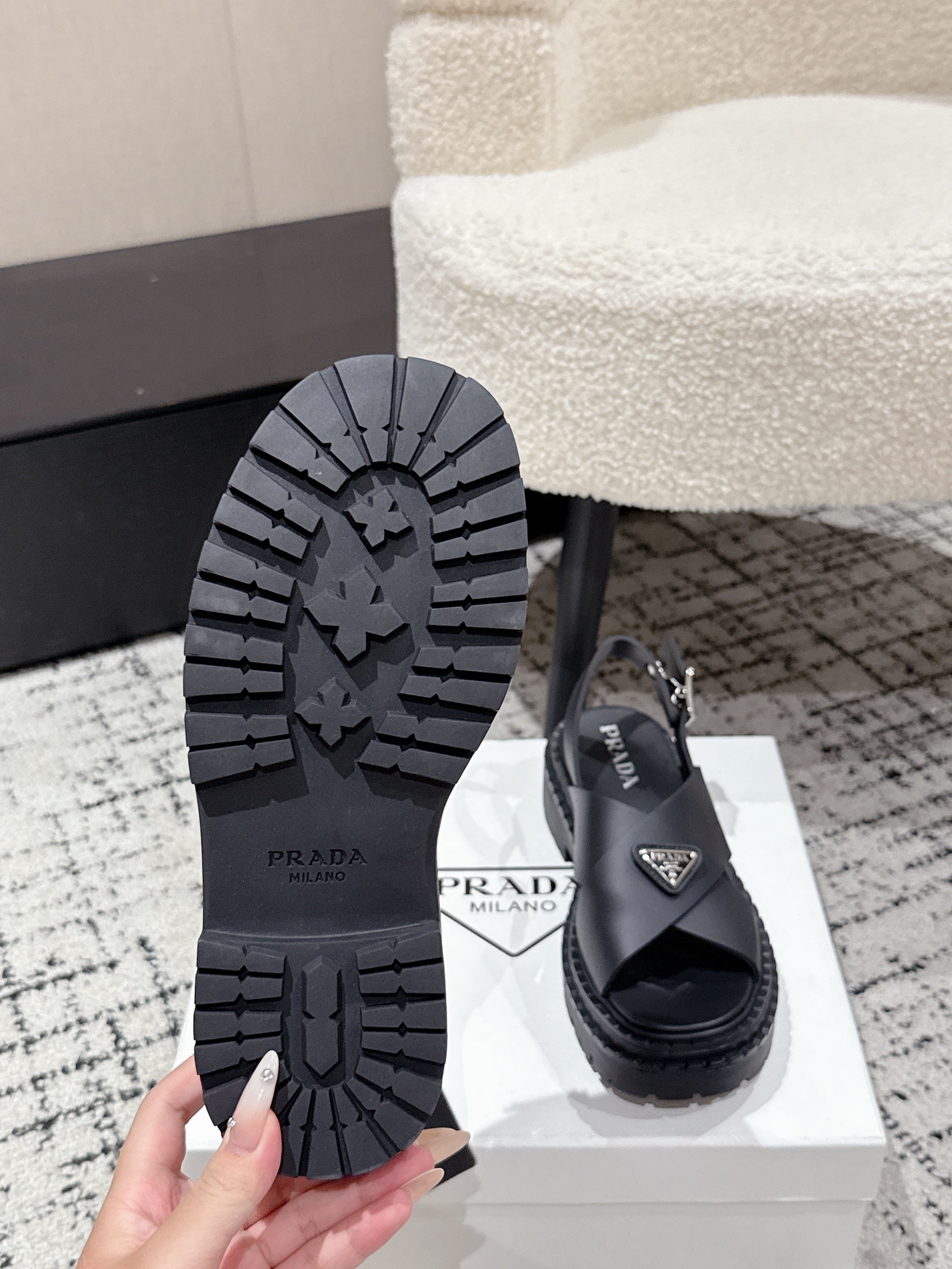 PRADA 25S CRISSCROSS SANDALS IN BLACK CALFSKIN LOGO