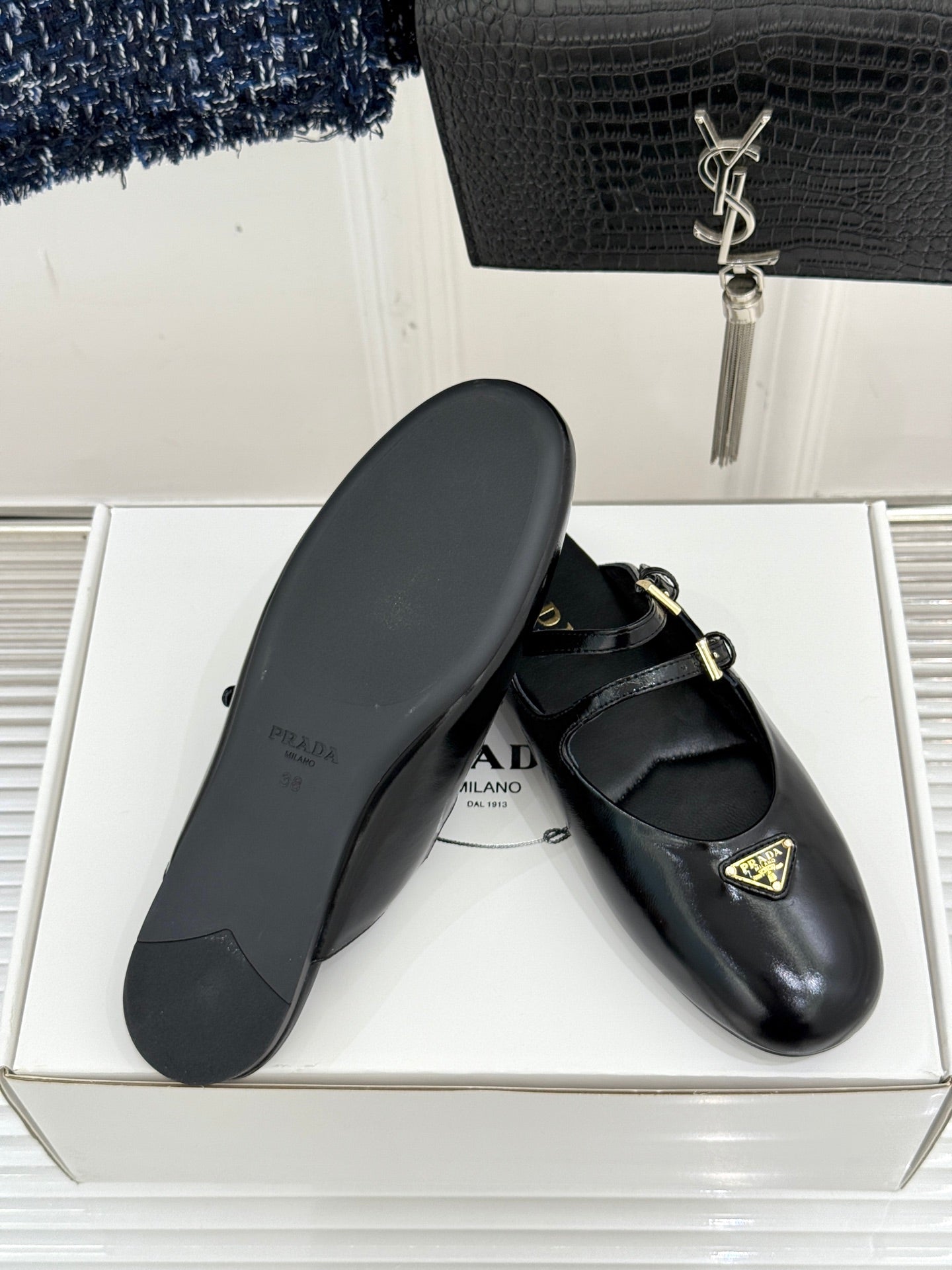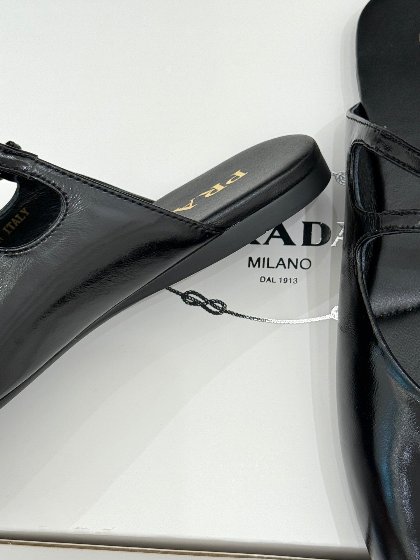 PRADA 25S DUAL MARY JANE BALLERINA MULES IN BLACK CALFSKIN