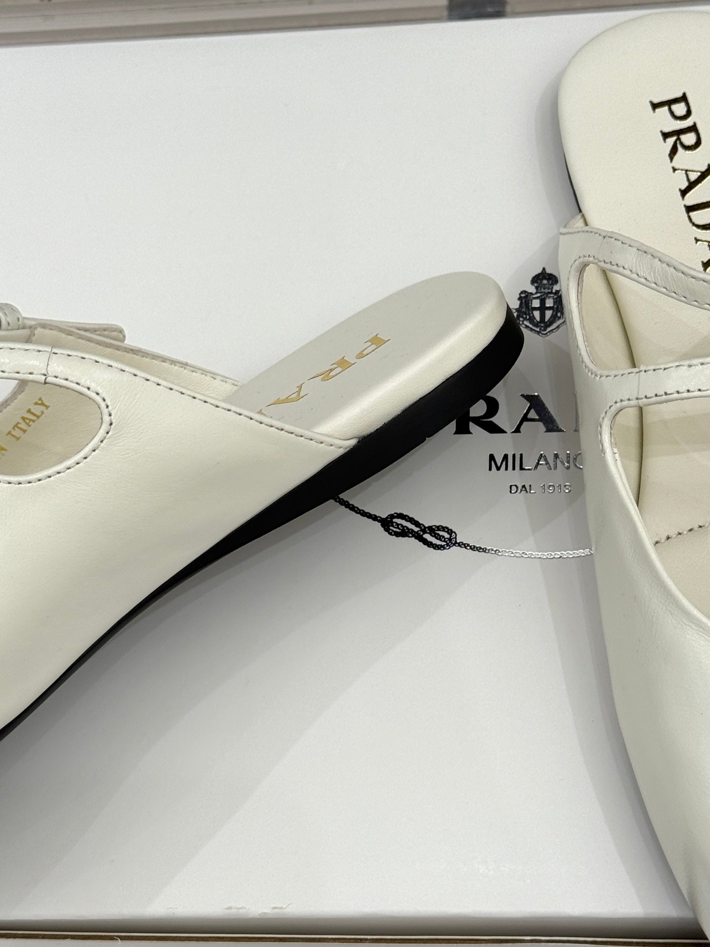PRADA 25S DUAL MARY JANE BALLERINA MULES IN IVORY CALFSKIN