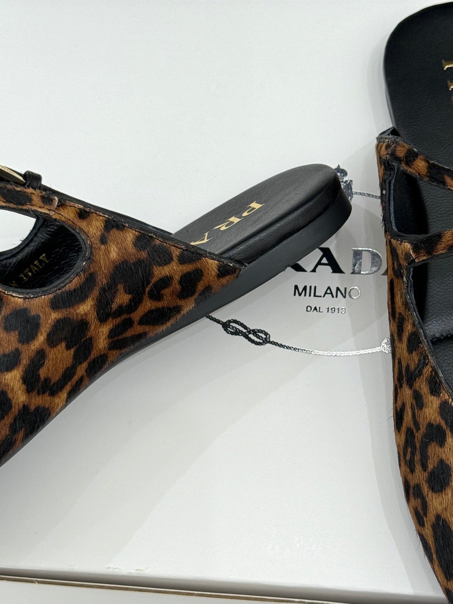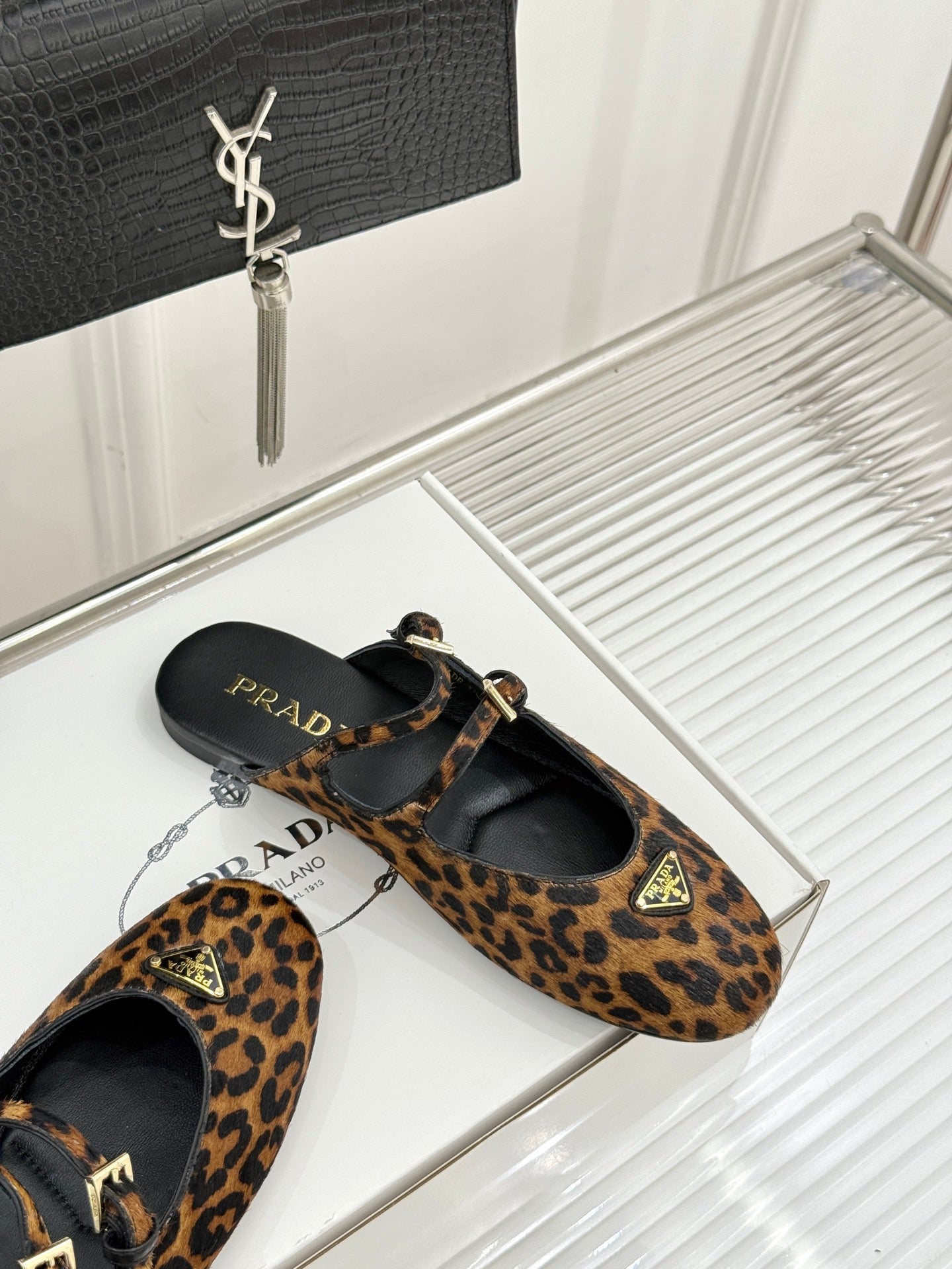 PRADA 25S DUAL MARY JANE BALLERINA MULES IN LEOPARD PRINT PONY HAIR