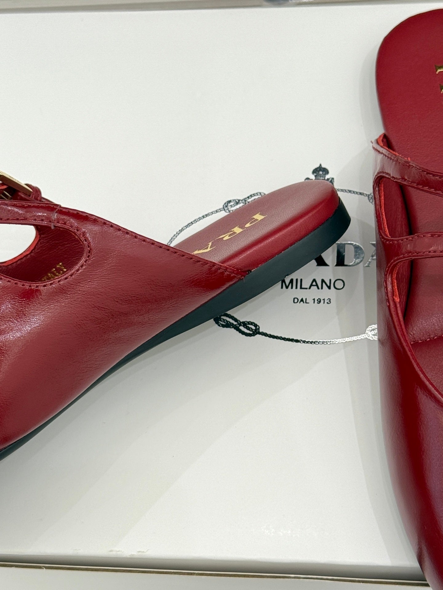 PRADA 25S DUAL MARY JANE BALLERINA MULES IN RED WINE CALFSKIN