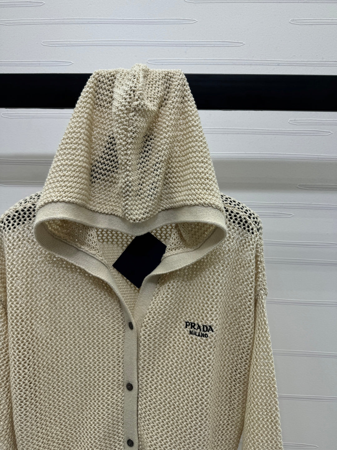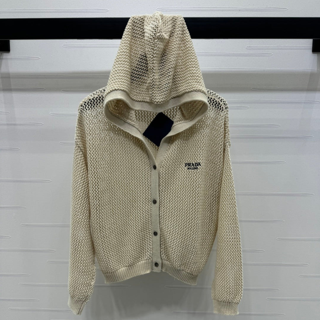 PRADA LACE-KNIT LONG-SLEEVE HOODIE 274830