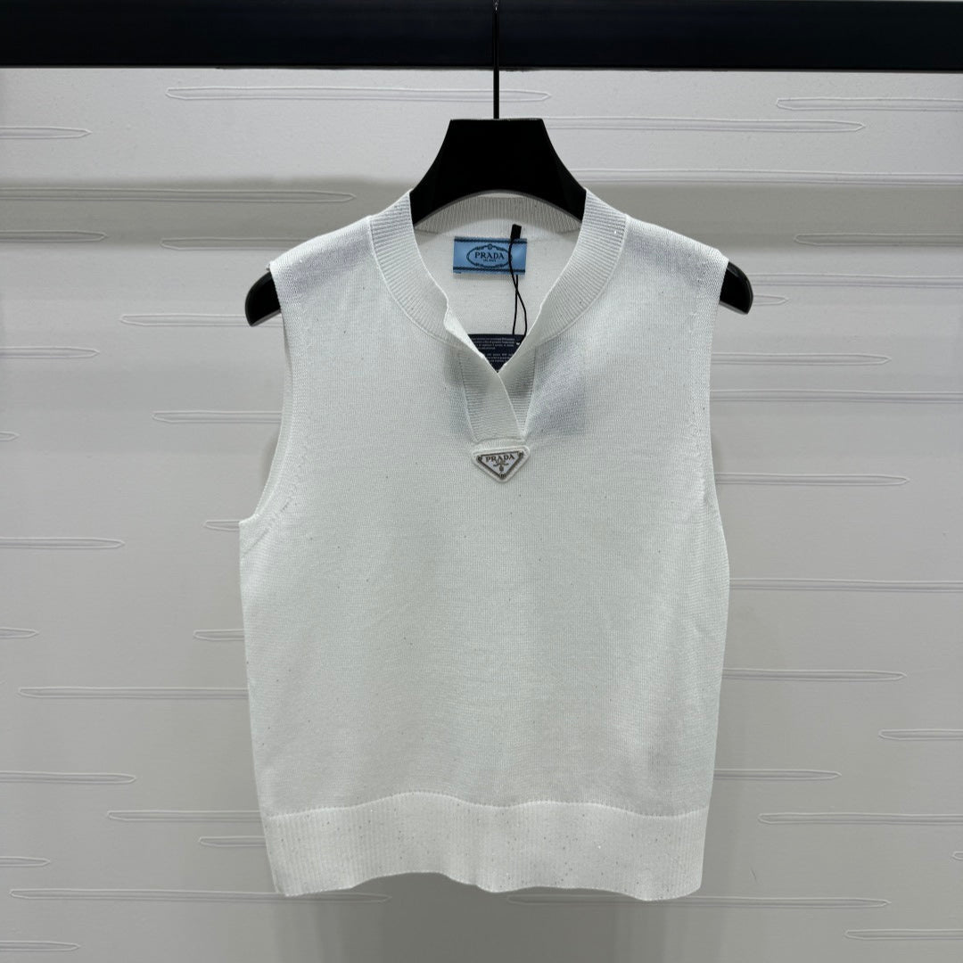 PRADA SEQUIN-EMBELLISHED V-NECK KNIT TANK BLAZER 274810