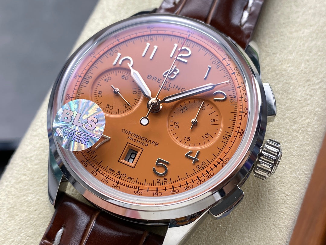 PREMIER B01 CHRONOGRAPH 42 STEEL CASE BROWN ALLIGATOR LEATHER STRAP